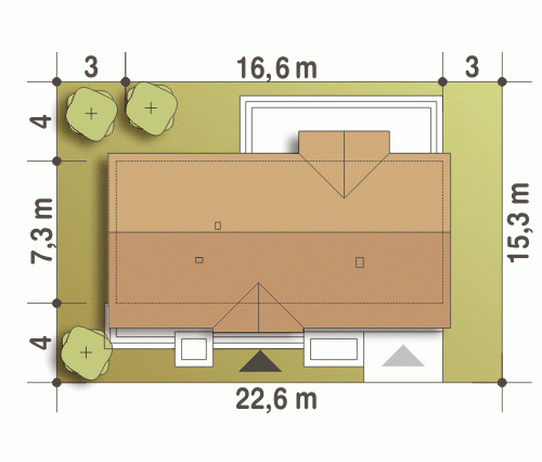 - Minimalne wymiary działki15.3 x 22.6m