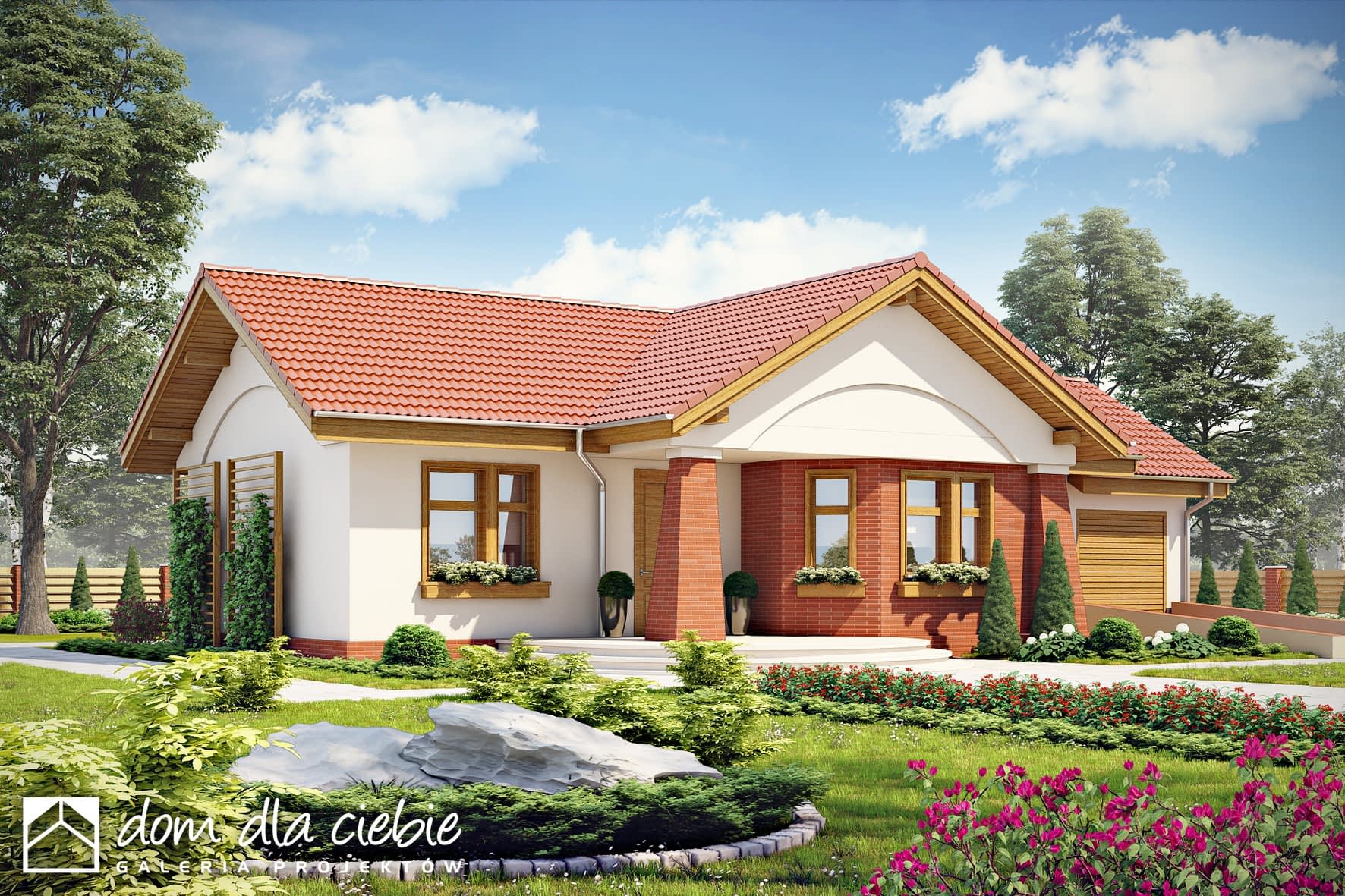 elewacje: tynk akrylowy, okładzina kamienna
