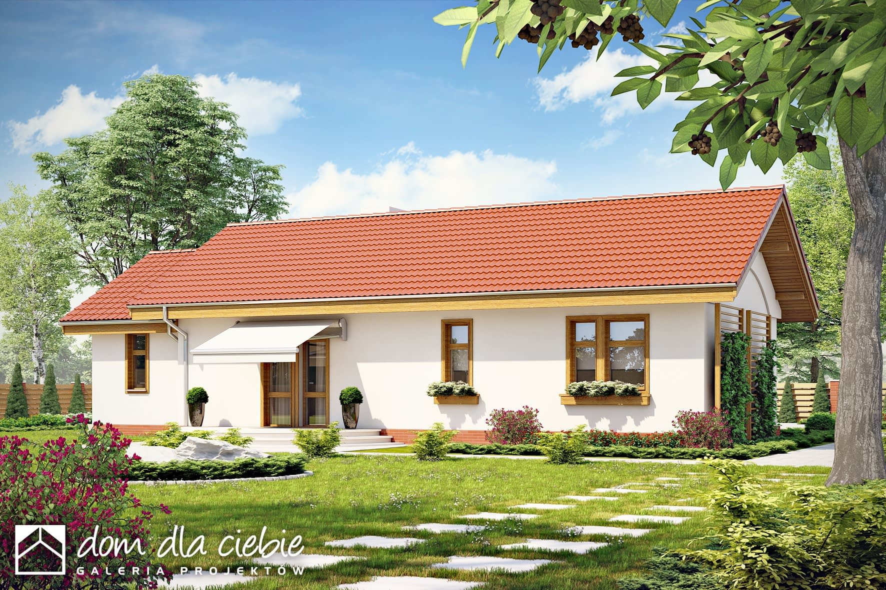 Skowronek styl to dom parterowy przeznaczony dla 2-3 osobowej rodziny o ciekawej, przyjaznej architekturze i prostej funkcji. Na jednym poziomie zaprojektowano dwie wygodne sypialnie, łazienkę, oraz wygodny salon z kominkiem. Z garażu można przejść bezpośrednio do kuchni poprzez pomieszczenie techniczne z piecem CO. Skowronek styl może z powodzeniem służyć jako domek letniskowy. Projekt dostępny również w wersji bez garażu.