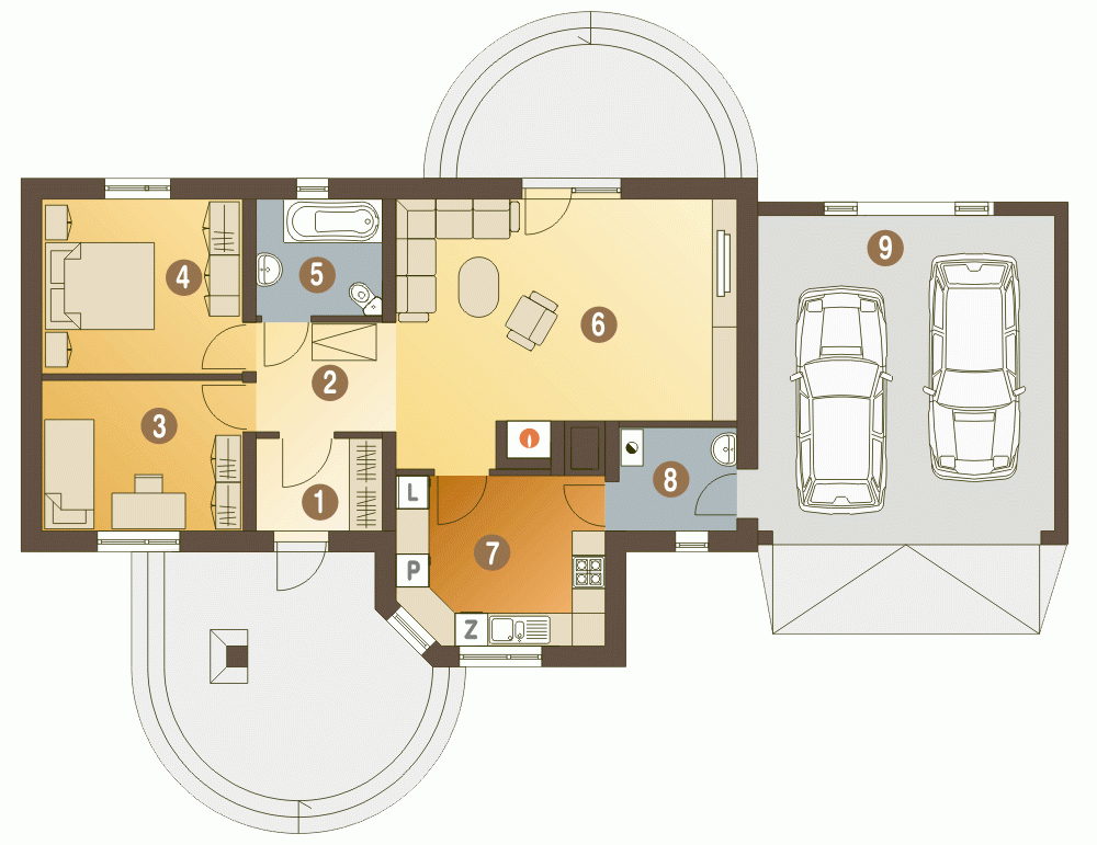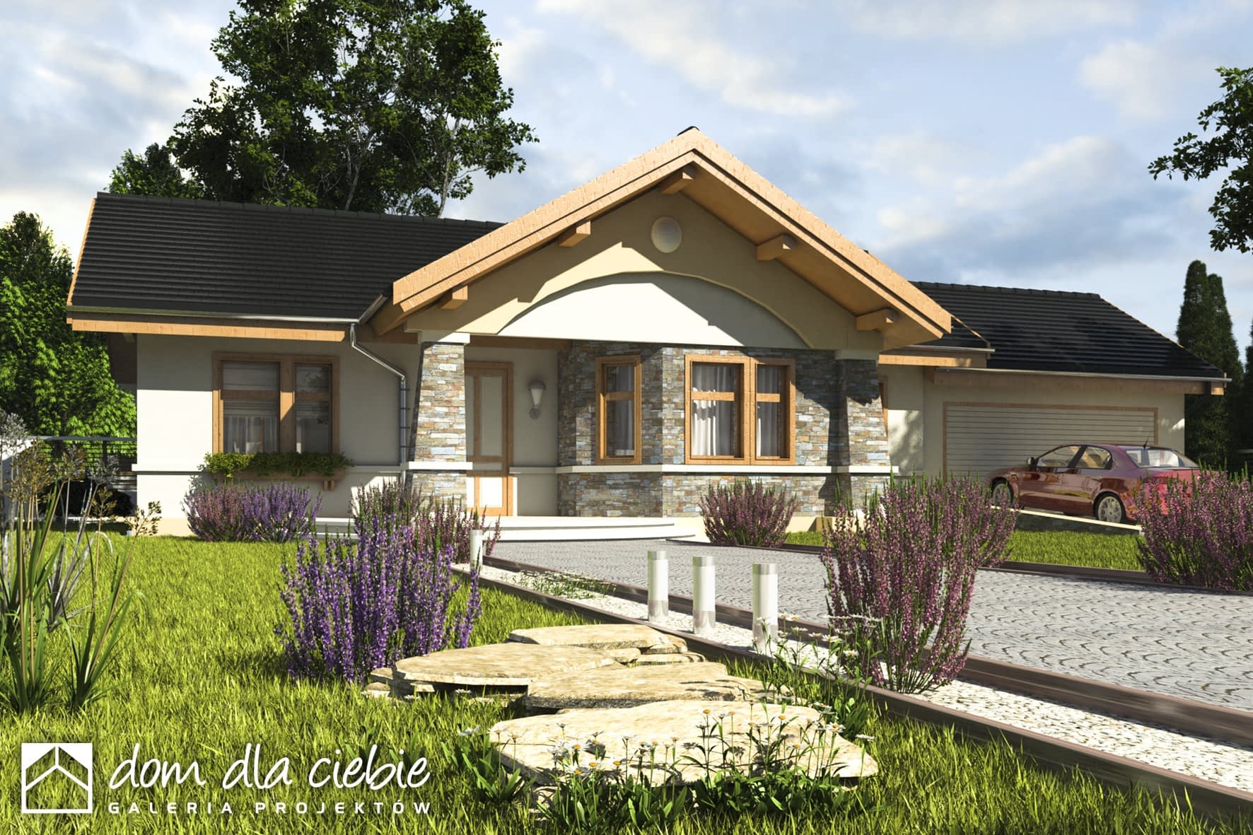 Skowronek to dom parterowy przeznaczony dla 2-3 osobowej rodziny o ciekawej, przyjaznej architekturze i prostej funkcji. Na jednym poziomie zaprojektowano dwie wygodne sypialnie, łazienkę, oraz wygodny salon z kominkiem. Z dwustanowiskowego garażu można przejść bezpośrednio do kuchni poprzez pomieszczenie techniczne z piecem CO. Skowronek może z powodzeniem służyć jako domek letniskowy.