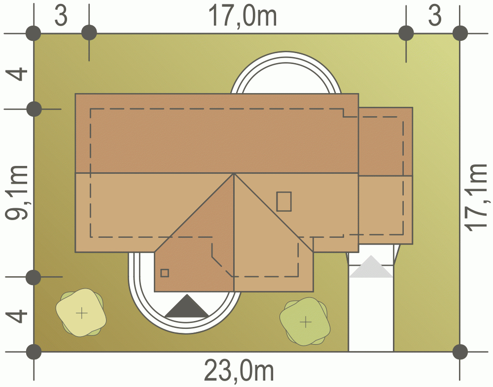 - Minimalne wymiary działki17.1 x 23m