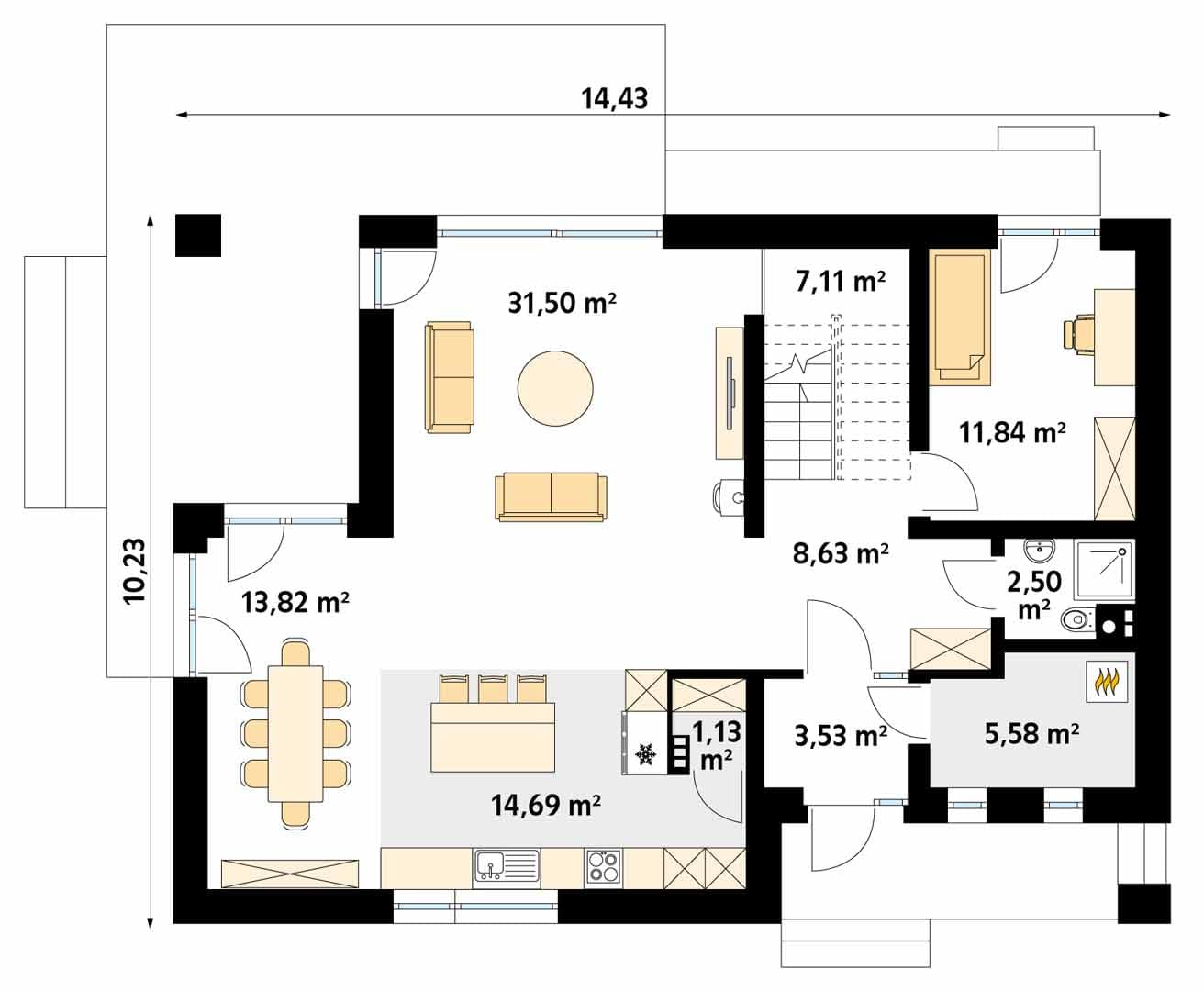 - Szerokość domu14.43 m