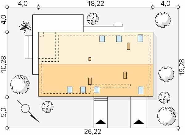- Minimalne wymiary działki19.28 x 26.22m