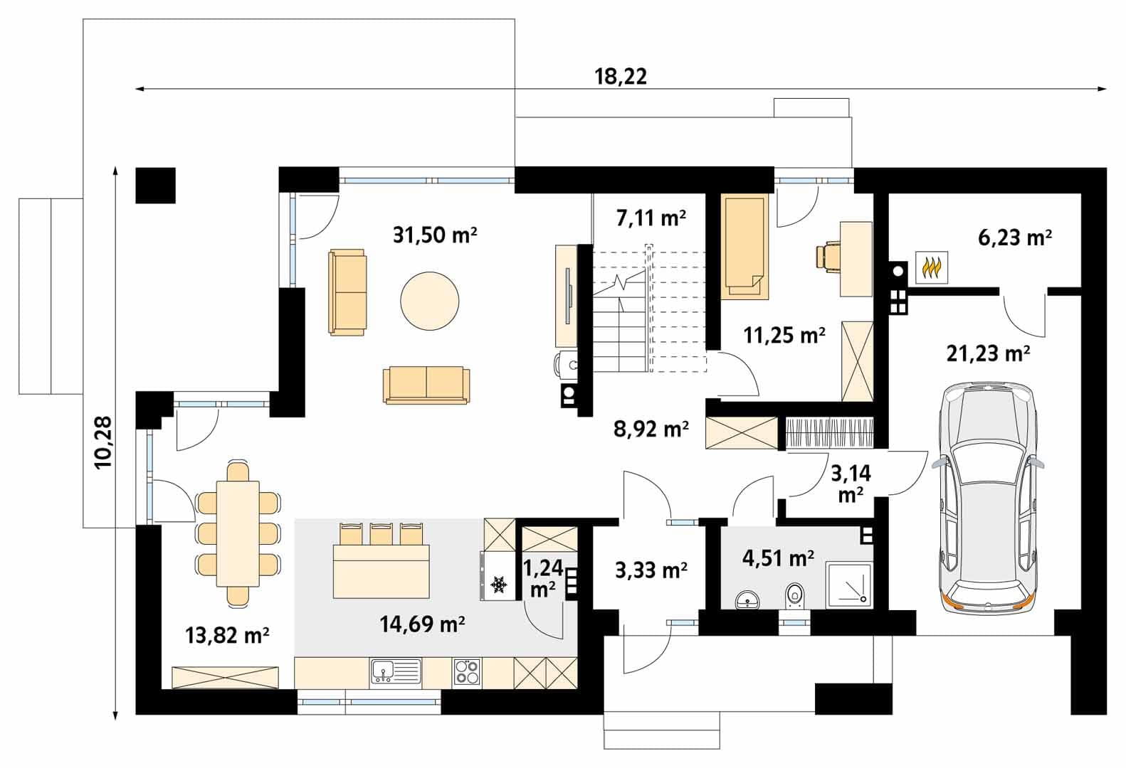 - Szerokość domu18.22 m