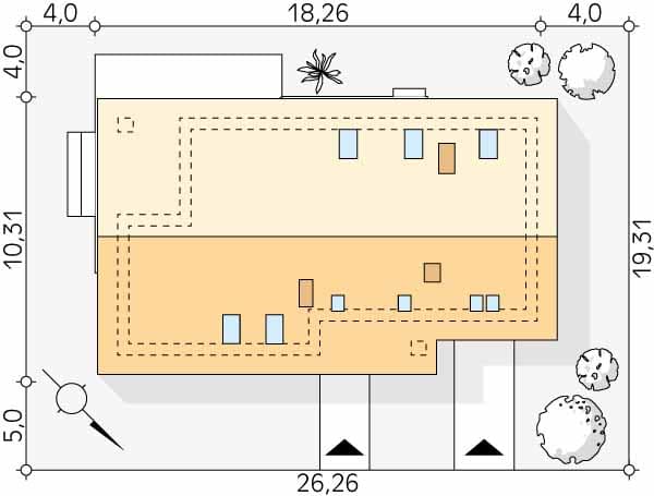 Ściany: 2-warstwowe - pustak ceramiczny + styropian Termo Organika, Stropy: żelbetowe, wylewane, Dach: blacha na rąbek stojący Ruukki Classic,Rzuty