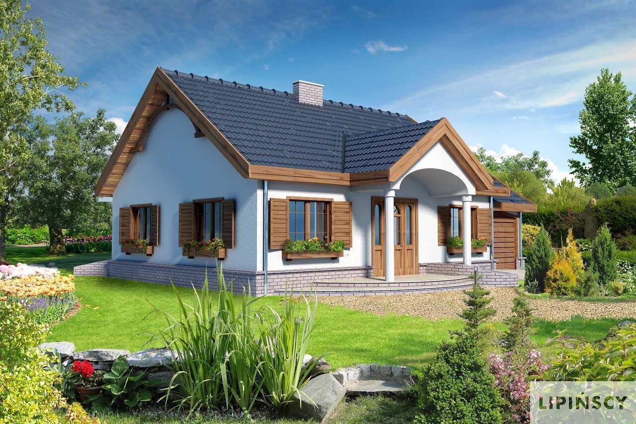 Jedna z wersji pięknego domu Sofia (LMB41), w której przeniesiono garaż od strony sypialni. Wszystkie pomieszczenia są rozplanowane w sposób funkcjonalny i logiczny, z myślą o wygodzie mieszkańców. Mają oni zatem do dyspozycji salon z miejscem na stół, dużą kuchnię, łazienkę i dwie sypialnie. Zaplanowano także jednostanowiskowy garaż, za którym umieszczono kotłownię. Bryła Sofii V zwraca uwagę piękną elewacją, z dekoracyjnym wykuszem od strony ogrodu, łukowatymi oknami i ciekawie zaprojektowanym wejściem.