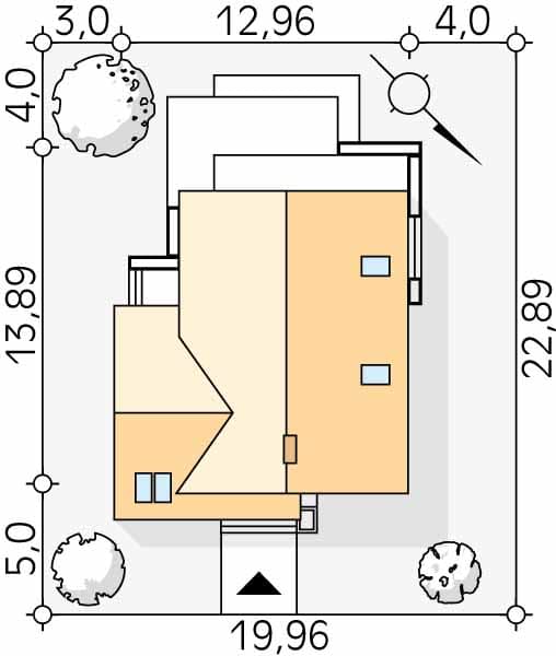 - Minimalne wymiary działki22.89 x 19.96m