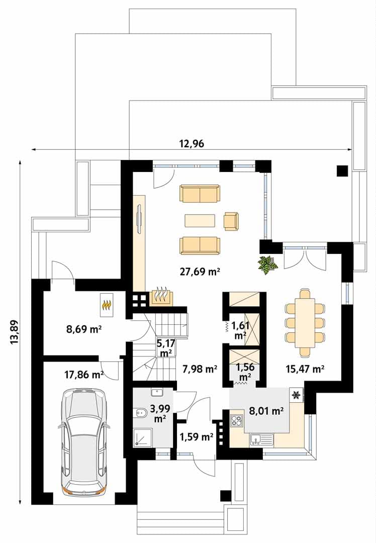 - Szerokość domu12.96 m