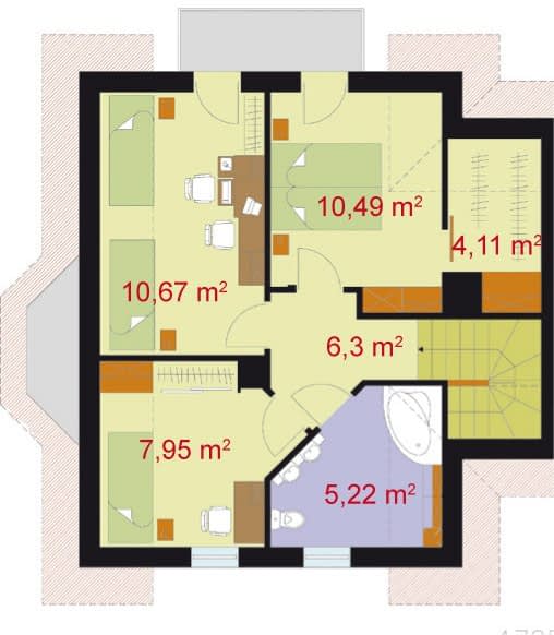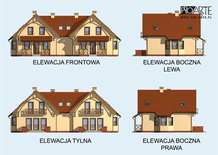 Od frontu maluje się wykwintny widok na tle którego wyróżnia się niewielki ganek; z tyłu natomiast na uwagę zasługuje szklane trio (drzwi + 2 okna) wprowadzające do wnętrza domu dużą ilość światła. Sercem bliźniaka oraz centrum domowego ogniska są salon, kuchnia i jadalnia, które tętnią życiem każdego popołudnia, gdy gromadzi się w nich cała rodzina. Gdy dzień dobiegnie końca wszyscy domownicy mogą udać się na piętro do swych sypialni, aby zasnąć w poczuciu radości, komfortu i bezpieczeństwa.