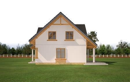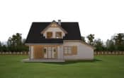 Projekt domu Spokojny to dom jednorodzinny dla rodziny 4-5cioosobowej parterowy z poddaszem użytkowym, przekryty dwuspadowym dachem, z dobudowanym garażem. Ten niewielki domek ma w sobie wszystko to, czego potrzeba do wygodnego mieszkania każdej rodzinie. Jego wygląd zewnętrzny, tradycyjny styl architektury – potęgują wrażenie solidności o trwałości. Dzięki swojej stylistyce niewielki budynek wydaje się być większy i bardziej reprezentacyjny. Wejście do domu podkreślono ładnym zadaszeniem wspartym na bocznych kolumienkach. Szerokie przeszklone drzwi z bocznym naświetlem zapraszają do wewnątrz. Elewację frontową Spokojnego ozdabiają narożne okna, oraz lukarna w dachu znajdująca się symetryczne nad wejściem. Od ogrodu mamy piękne szerokie drzwi balkonowe, z których można wyjść salonu wprost na częściowo zadaszony taras. Wnętrze domu Spokojny podzielono na części dzienną, sypialnie, oraz część gospodarczą. Na parterze połączone pomieszczenia salonu, holu i półotwartej kuchni tworzą przestrzeń dzienną. Trochę z boku znajduje się dodatkowy pokój, który może być sypialnią lub gabinetem, łazienka i schody na poddasze. Z holu wchodzimy również do kotłowni i garażu. Na poddaszu zaprojektowano trzy wygodne sypialnie z wbudowanymi szafami, oraz łazienkę. W dwóch sypialniach można zamienić szafy na niewielkie garderoby. Projekt domu Spokojny ma prostą konstrukcję, łatwą i niedrogą w budowie. Dzięki zwartości bryły, energooszczędnym rozwiązaniom i niewielkiej kubaturze, będzie tani w późniejszym utrzymaniu. Pracownia posiada także odbicie lustrzane projektu domu Spokojny.