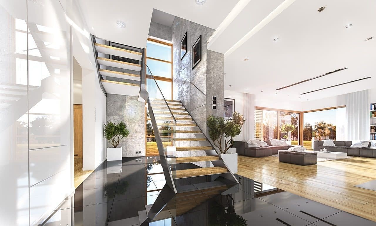 - Zmianę umiejscowienia, kształtu i materiału wykonania schodów w budynku.