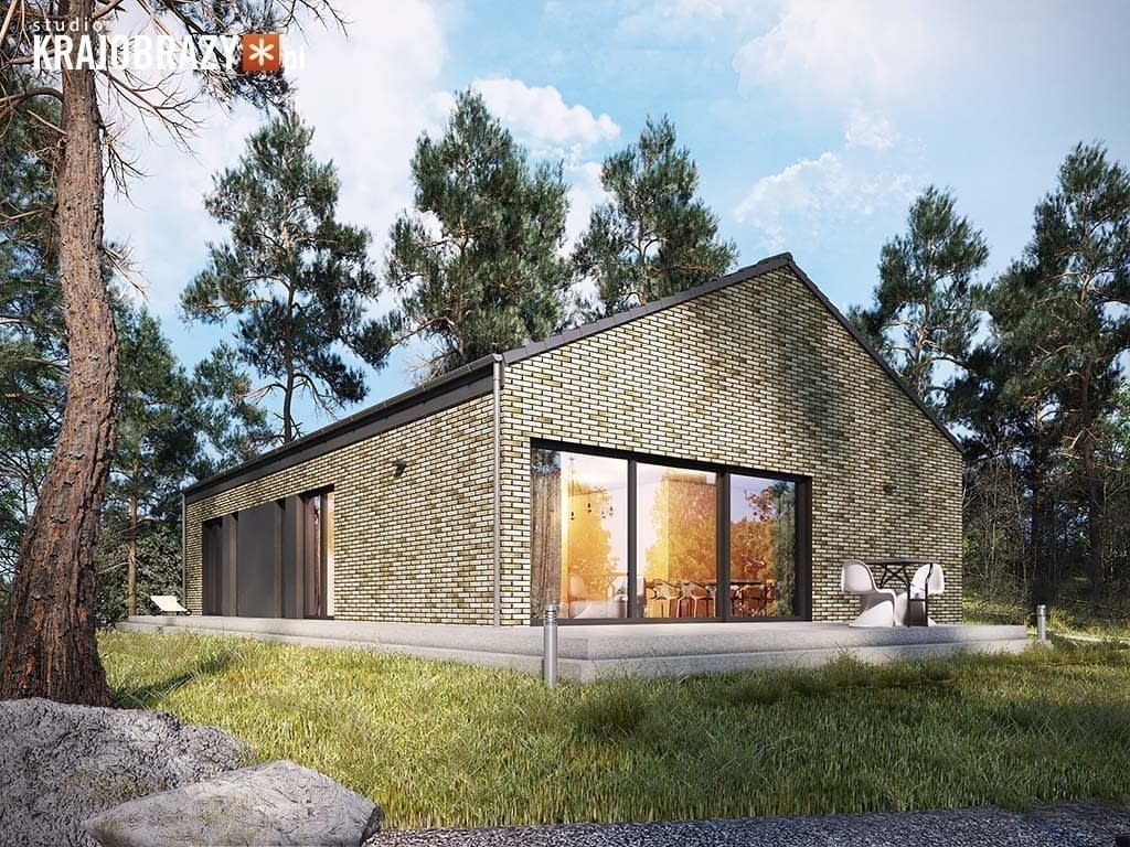 Polecamy ten parterowy dom bez garażu szczególnie inwestorom pragnącym zamieszkać w prostym i ekonomicznym, ale jednocześnie niebanalnym budynku w coraz bardziej popularnym nowoczesnym stylu stodoły. Jego program funkcjonalny to salon z kuchnią z barem, cztery sypialnie, dwie łazienki, garderoba, kotłownia oraz spiżarnia. Szczególnie podkreślić należy duże przeszklenia w części dziennej, dzięki którym dom doskonale wpisze się i zintegruje z zielenią na działce.Rzuty