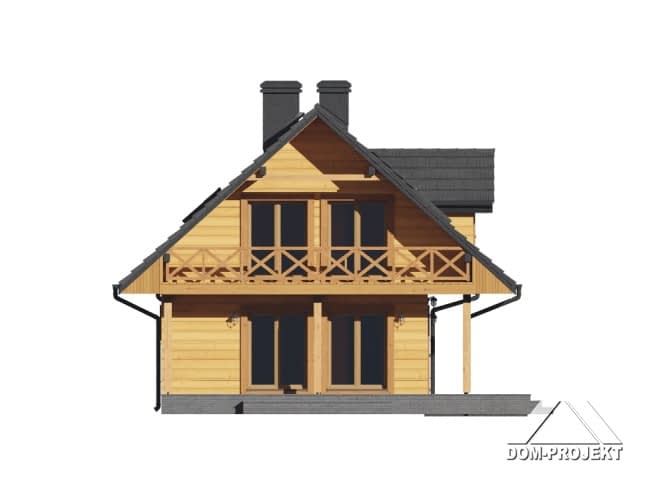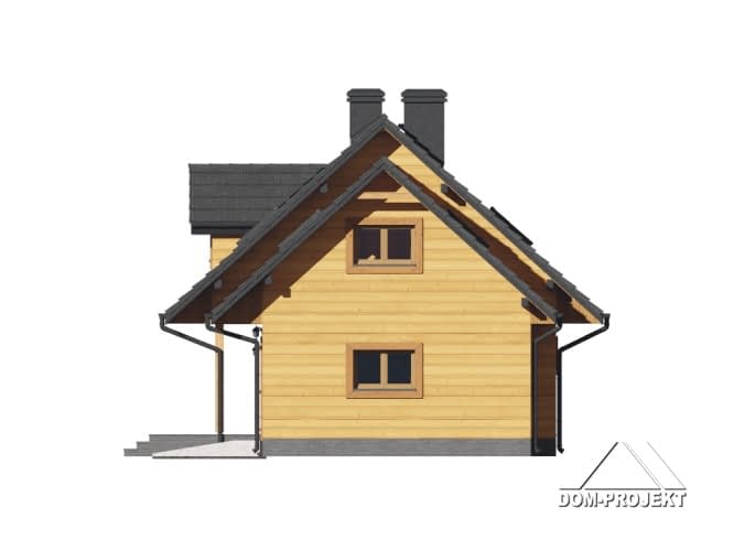 Nieduży, zgrabny dom z poddaszem mieszkalnym. W części dziennej na parterze salon z jadalnią, kominkiem i schodami na poddasze. Wydzielona kuchnia. Na poddaszu cztery sypialnie. W części gospodarczej domu kotłownia i jednostanowiskowy garaż. Częściowo zadaszony, duży taras.Rzuty