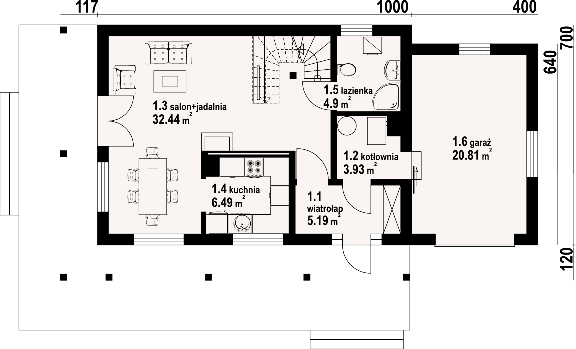 - 1.3 - salon+jadalnia32.44 m²