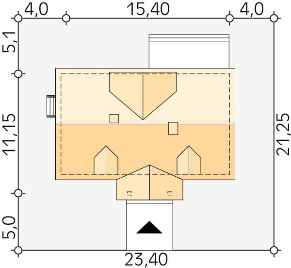 - Minimalne wymiary działki21.25 x 23.4m