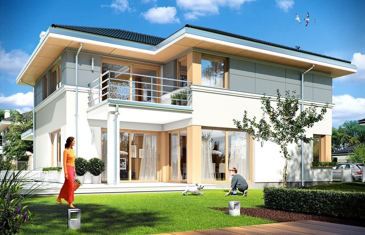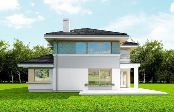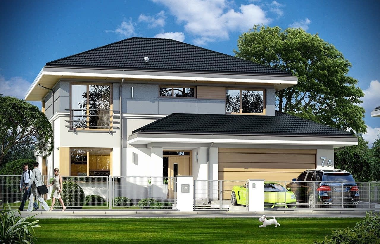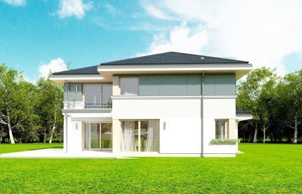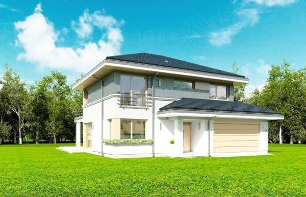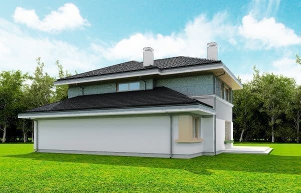 Projekt domu Sydney to piętrowa komfortowa willa miejska, z podpiwniczeniem i podwójnym garażem,przeznaczona dla 4-6cioobowej rodziny. Projekt domu Sydney to wygodny nowoczesny dom, o ciekawej bryle i funkcjonalnie rozwiązanych wnętrzach. Dom jest energooszczędny - zastosowano w nim dobre materiały i technologie, aby podnieść komfort mieszkańców. Duże przeszklenia, okładziny ścian, kolorystyka - wszystko utrzymane jest w nowoczesnym stylu. Dodatkowe daszki, balkony, narożne okna urozmaicają bryłę domu. Wnętrze budynku podzielono na cześć dzienną na parterze i sypialnie na piętrze. Dodatkowo przewidziano piwnicę, która prócz pomieszczeń technicznych mieści w sobie dodatkową przestrzeń rekreacyjną. Na parterze zaprojektowaliśmy otwartą przestrzeń połączonych pomieszczeń salonu, jadalni, holu i dużej kuchni. W salonie przewidziano ścianę kominkową i TV. Z salonu i jadalni wychodzimy dużymi przeszkleniami na taras ogrodowy. Na parterze znajduje się też dodatkowy pokój, łazienka i garaż. Na piętrze mamy aż cztery pokoje sypialnie, w tym apartament rodziców z własną łazienką, garderobą i tarasem. Zaprojektowano też dużą ogólną łazienkę. W domu, prócz piwnicy, do wykorzystania jest dodatkowo strych nad piętrem. „Sydney” to prawdziwy dom - z piwnicą i strychem. Budynek mimo swej sporej powierzchni jest bardzo rozsądnie zaprojektowany - jego konstrukcja jest przejrzysta i dość prosta. Budynek ma zwartą bryłę. Projekt domu Sydney powinien być stosunkowo łatwy i niedrogi w budowie i nie kosztowny w późniejszym utrzymaniu. Zapraszamy !