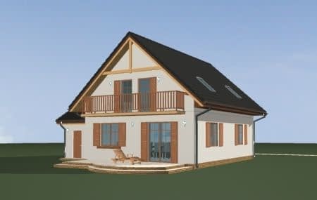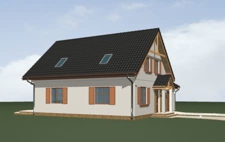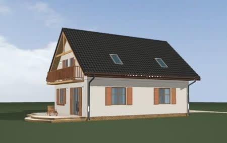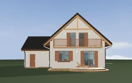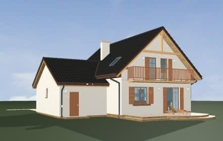Projekt domu Sylwia to budynek parterowy z użytkowym poddaszem. Przekryty dwuspadowym dachem, z dobudowaną bryłą garażu. Domek jednorodzinny, wręcz idealny dla 4-6 osób. Budynek łączy w sobie bezpretensjonalność bryły i funkcjonalnie zaplanowane wnętrze. Na parterze domu Sylwia zaprojektowano jednoprzestrzenny salon połączony z aneksem jadalnym i kuchnią, na poddaszu umieszczono trzy sypialnie. Duży garaż dobudowany do głównej bryły można z łatwością powiększyć do dwustanowiskowego. Strych nad garażem to przestrzeń magazynowa domu. Taras i balkon otwierają wnętrze na ogród. Front budynku został ozdobiony gankiem wejściowym z zadaszeniem. Pracownia posiada projekt Sylwia w odbiciu lustrzanym.