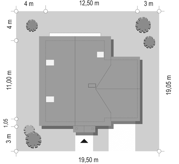 - Minimalne wymiary działki19.05 x 19.5m