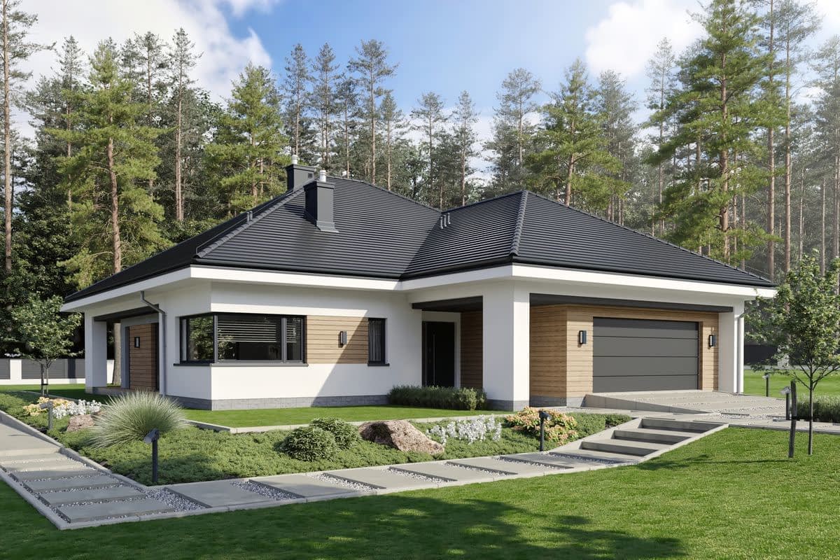 SZCZEGÓLNY D78 to parterowy dom z dachem wielospadowym. W tym projekcie elegancja została połączona z funkcjonalnością.