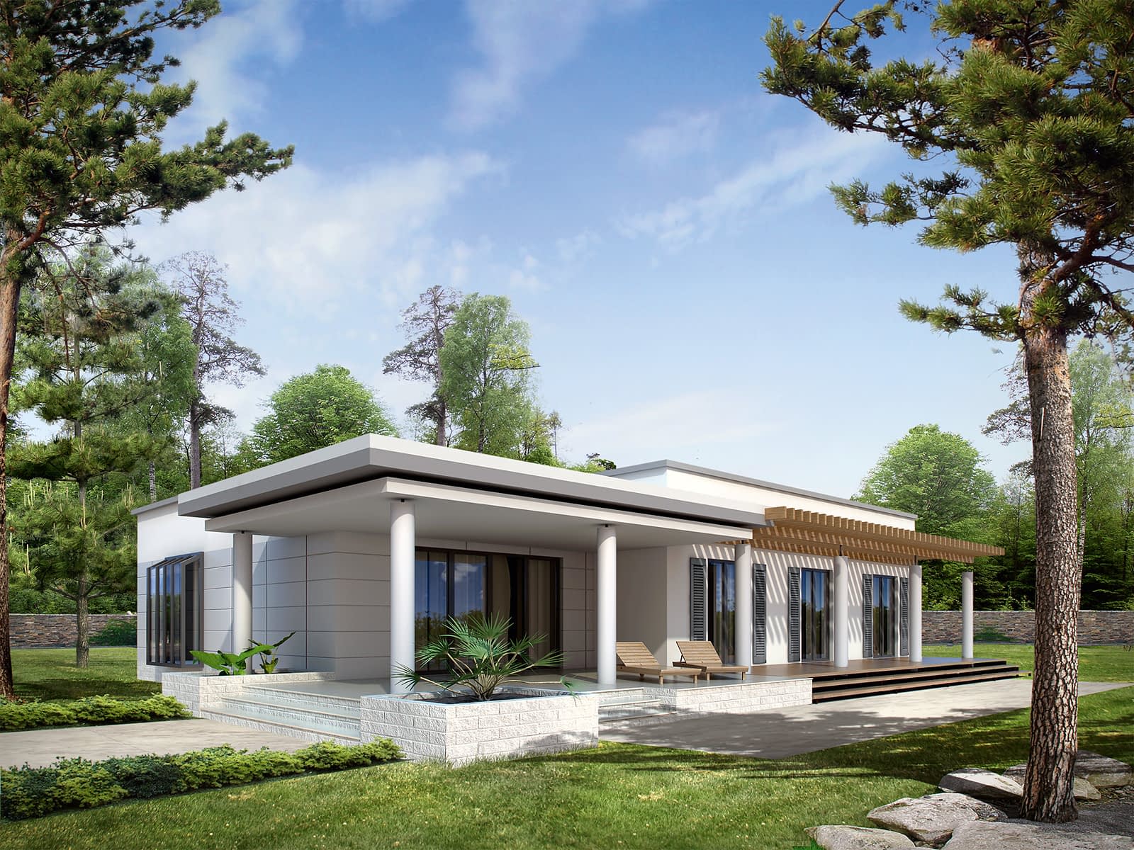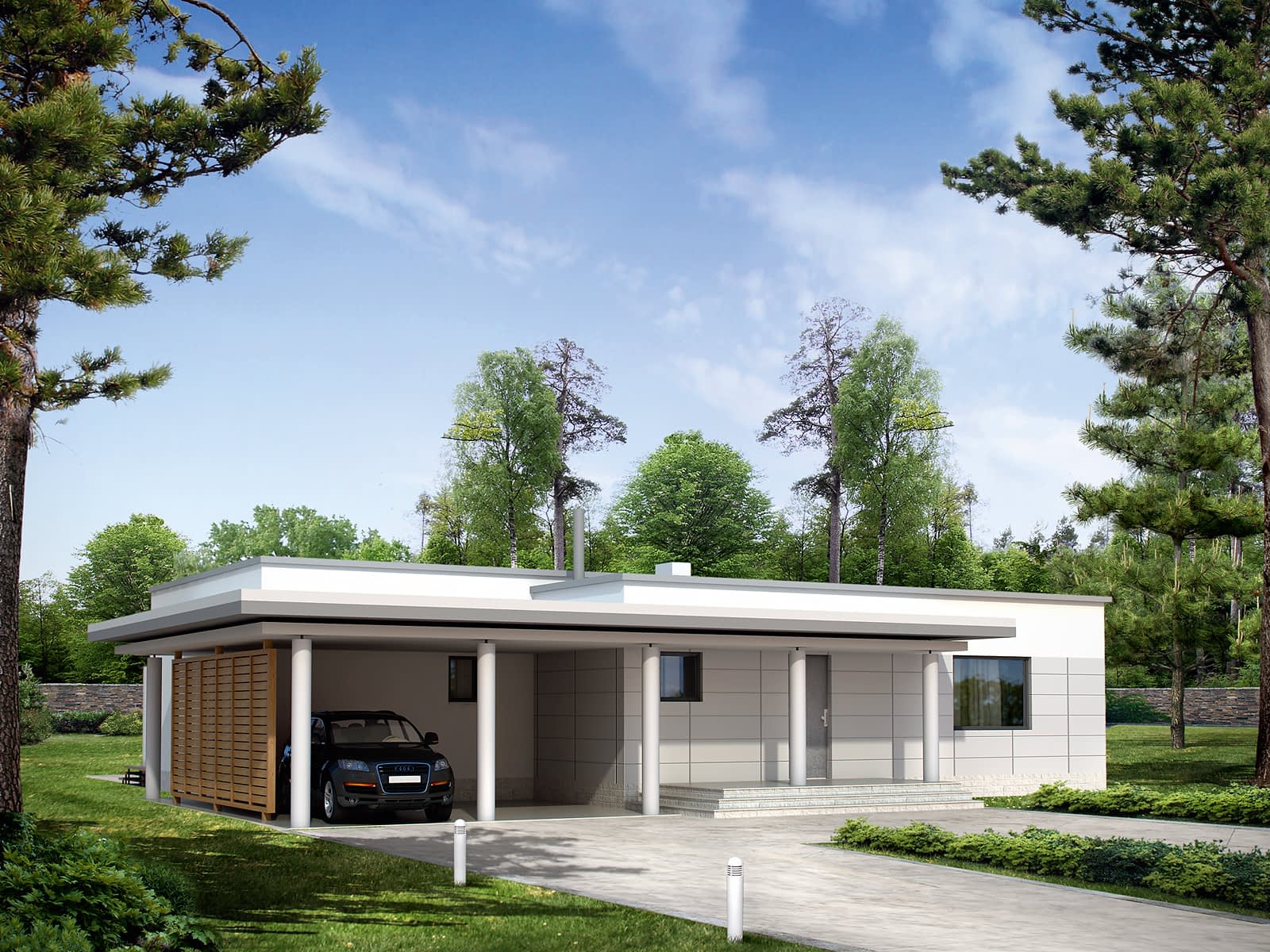 Dom mieszkalny jednorodzinny przeznaczony dla 4-osobowej rodziny. Zaprojektowano czytelny, funkcjonalny układ parteru. Wyraźnie oddzielona część nocna od części dziennej z osobną łazienką dla rodziców. Istnieje możliwość zabudowania wiaty garażowej.Konstrukcja