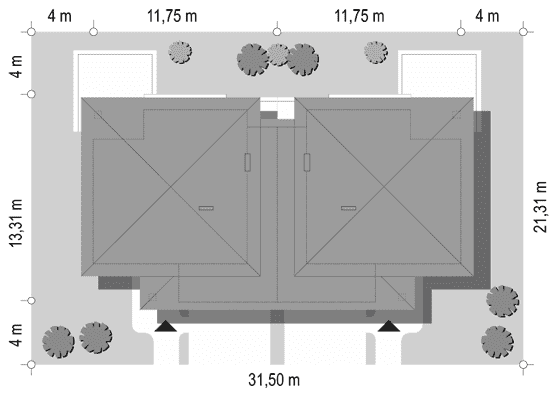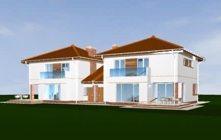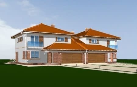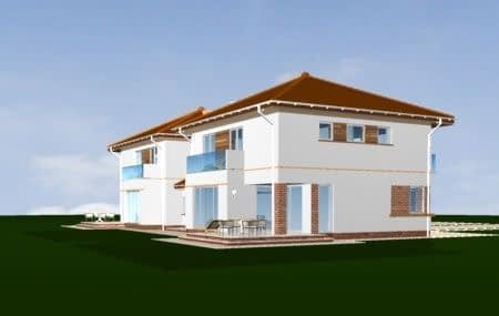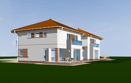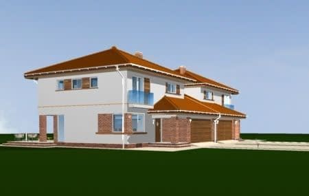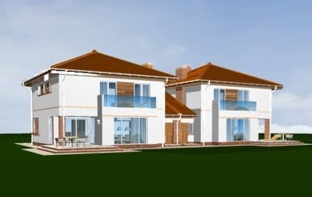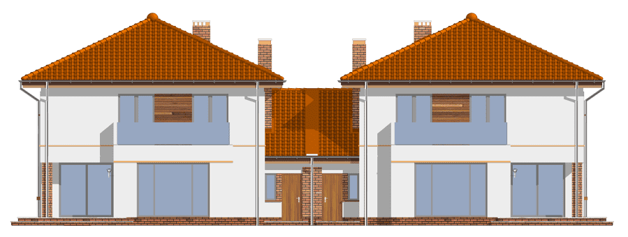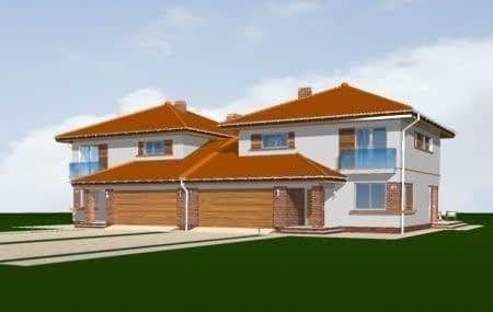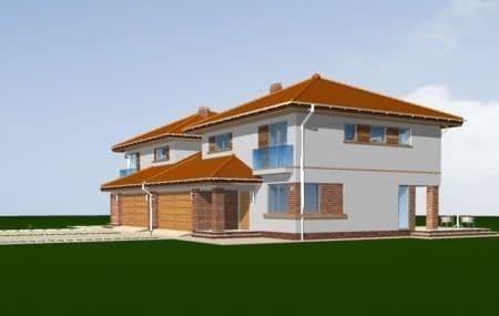 Projekt domu Szmaragd 2 to wariantowe rozwiązanie projektu domu Szmaragd. Zaprojektowano go tym razem w wersji bliźniaczej. Budynek o nowoczesnej formie z atrakcyjnymi detalami współgra z prostotą bryły i konstrukcji. Projekt domu Szmaragd 2 to dwie części bliźniaka przekryte dachami kopertowymi połączono garażami zwieńczonymi dwuspadowym, niższym dachem. Dzięki temu połówki domu są od siebie wizualnie odseparowane. Zasadniczą bryłę projektu domu Szmaragd 2 wzbogacono o częściowo wystający garaż, podcień wejściowy i ogrodowy oraz wykusz i balkony. Całość tworzy spójną, czystą kompozycję. Nowoczesny zewnętrzny wygląd budynku współgra doskonale z wnętrzem. Na parterze zaplanowano jednoprzestrzenną otwartą część dzienną holu, jadalni i salonu, z dużymi przeszkleniami na ogród. Aneks jadalny częściowo połączono z kuchnią. Na parterze mieszkania, swoje miejsce znalazł także dwustanowiskowy garaż i kotłownia. W domu Szmaragd 2, na piętrze, umieszczono trzy sypialnie z łazienką, oraz dodatkowy pokój mogący służyć jako gabinecik, sypialnia gościnna, albo garderoba. Zapraszamy do zapoznania się z pełną ofertą pracowni MG Projekt tej serii : wersja bazowa (projekt domu Szmaragd), wersja z dodatkowym pokojem na parterze (projekt domu Szmaragd 3) oraz wersje w nowocześniejszym stylu ( projekt domu Szmaragd 4), (projekt domu Szmaragd 5), (projekt domu Szmaragd 6). Zapraszamy !UWAGA! Koszty realizacji oraz dane techniczne dotyczą połowy bliźniaka.