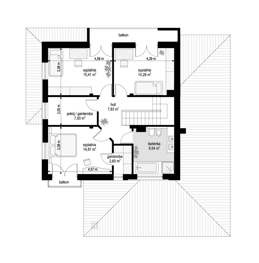 - Rodzaj dachuWielospadowy