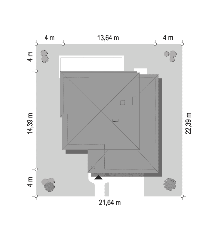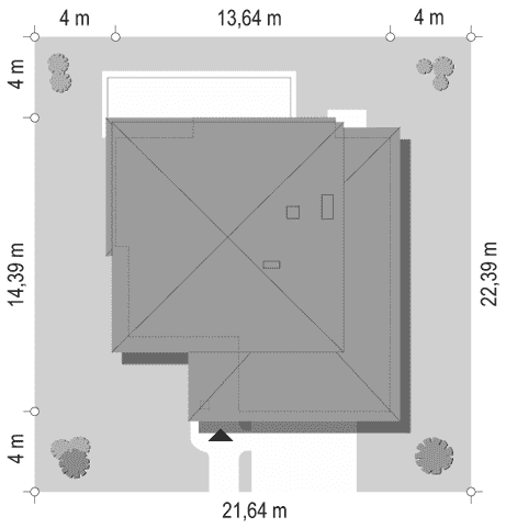 - Minimalne wymiary działki22.39 x 21.64m