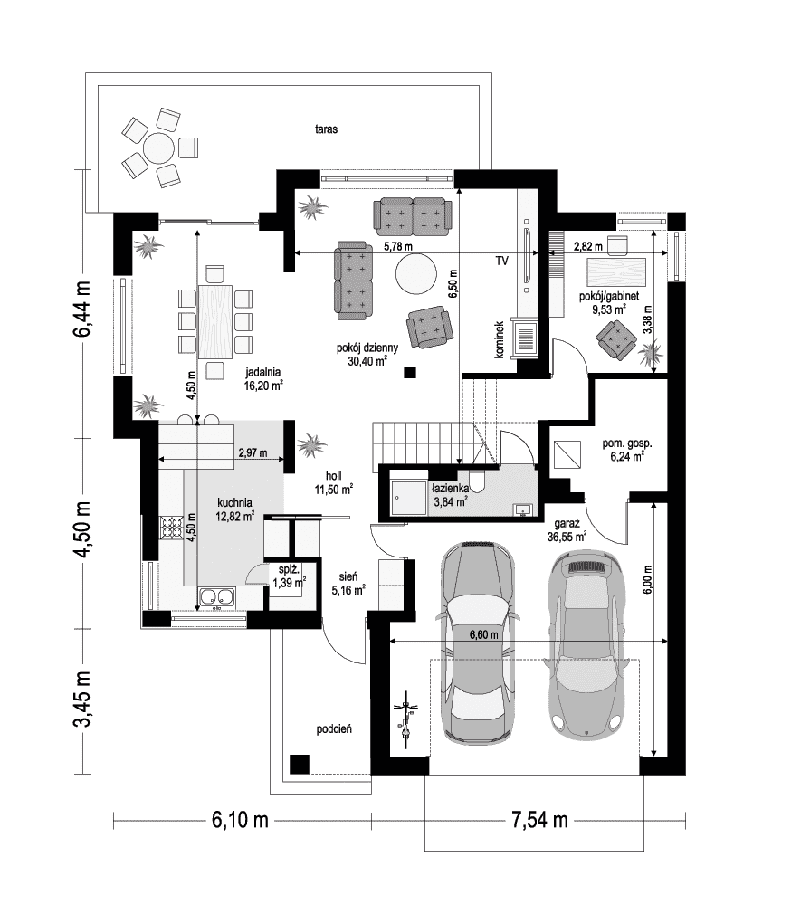 - Zmianę funkcji, ilości i usytuowania poszczególnych pomieszczeń na dowolnej kondygnacji w projekcie.