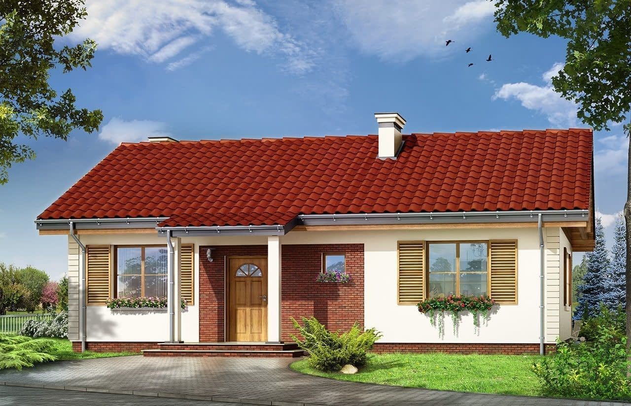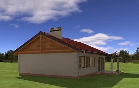 Projekt domu Szpak to prosty w budowie parterowy dom jednorodzinny, o spokojnej, skromnej architekturze. Budynek przeznaczony dla czteroosobowej rodziny. Prostokątna bryła domu przekryta dwuspadowym łagodnym dachem, z dodatkowymi podcieniami frontowego ganku i ogrodowego zadaszenia tarasu, kryje funkcjonalne, przemyślane wnętrze. Proporcjonalnie rozplanowane okna, ozdoby elewacji, dodatki - jak okiennice, czy kolumienki akcentujące wejście, nadają elewacjom atrakcyjnego wyglądu. Projekt domu Szpak, wewnątrz podzielono na część dzienną, z obszernym salonem z kominkiem, częściowo otwartą ustawną kuchnią i wygodnym holem, oraz na pokoje sypialne, będące trochę odseparowane od pokoju dziennego. Salon w projekcie Szpak ma, przez szerokie przeszklone drzwi bardzo ładne połączenie z tarasem ogrodowym. Zadaszenie tarasu tworzy naturalne przedłużenie salonu. Każda z trzech sypialni ma zaprojektowane wnęki szafowe. Łazienka i dodatkowe wc z natryskiem ułatwią codzienne użytkowanie domu. Obok dużego przedsionka zaprojektowano kotłownię, przystosowaną do ogrzewania paliwem stałym. Dom Szpak został zaprojektowany w ponadczasowej estetyce, z pominięciem chwilowych mód, z zastosowaniem tradycyjnych, trwałych materiałów. To po prostu normalny dom. Pracownia posiada wersję odbicia lustrzanego projektu oraz projekt domu Bursztyn czyli wersja z garażem. Zapraszamy!