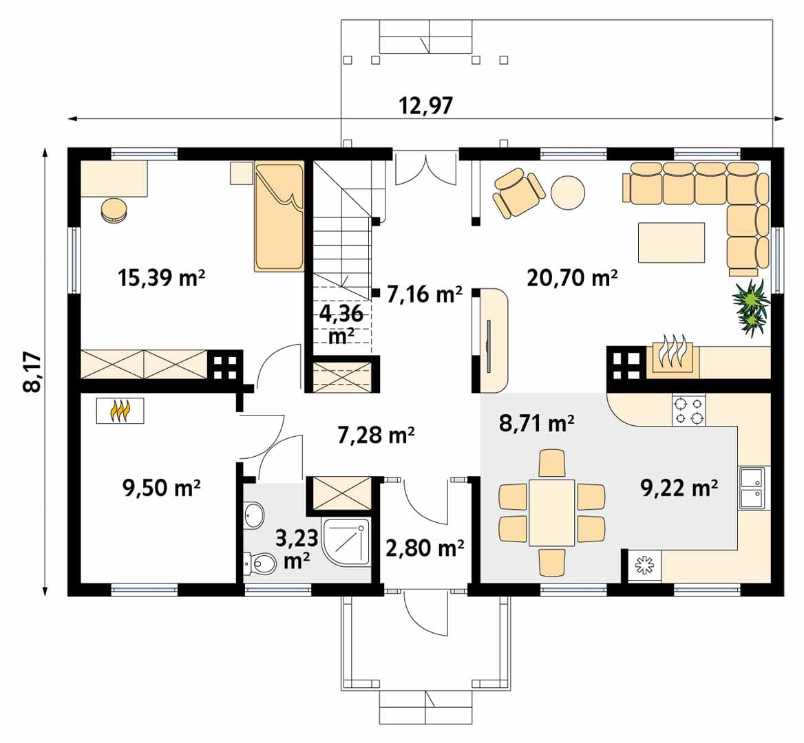 - Szerokość domu12.97 m