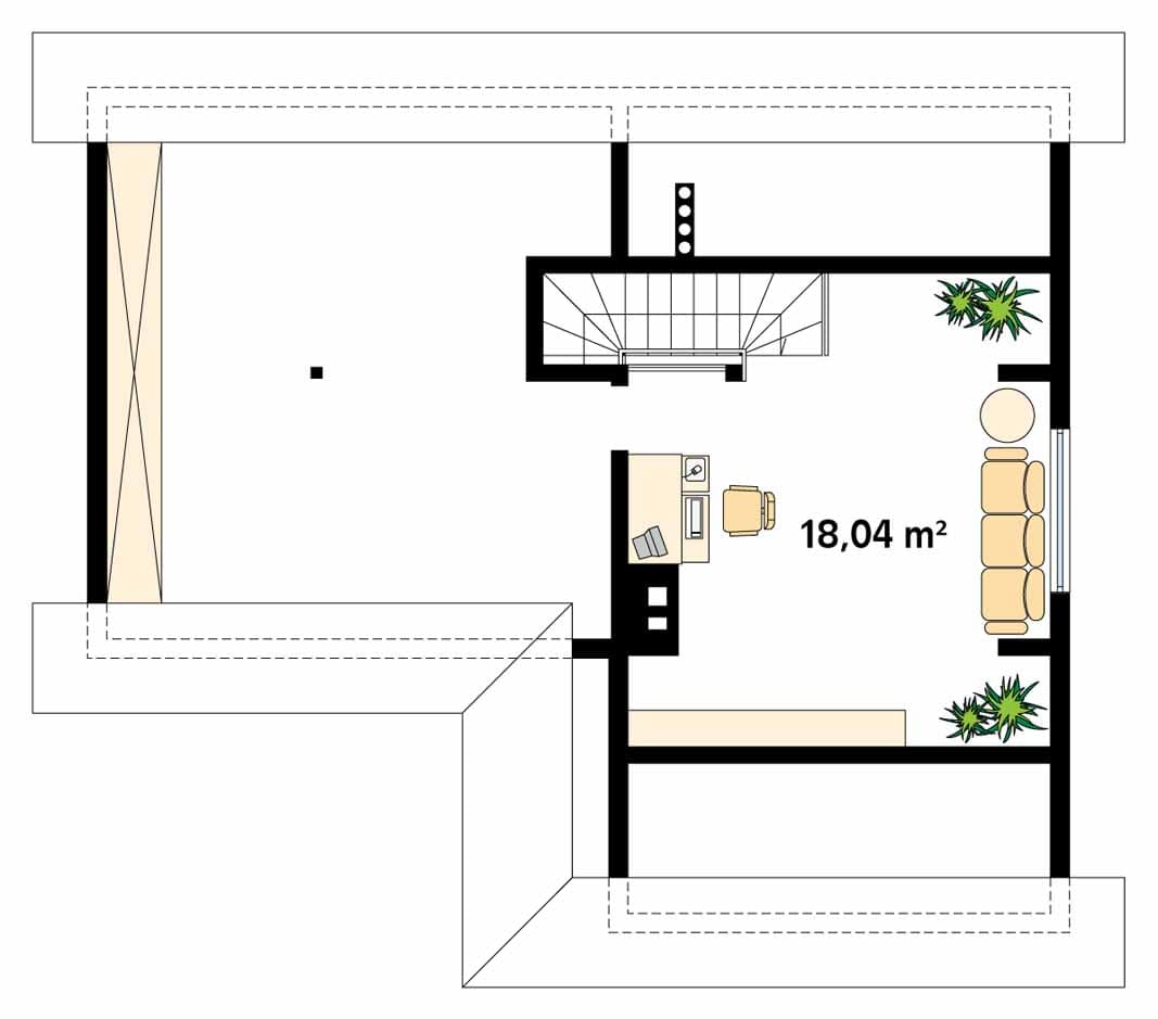 Mały dom jednorodzinny, parterowy z zagospodarowanym poddaszem, niepodpiwniczony. Przeznaczony dla 3-osobowej rodziny. Z powodzeniem można go adaptować na dom letniskowy. SZYPER 5 – projekt w wersji murowanej.Konstrukcja