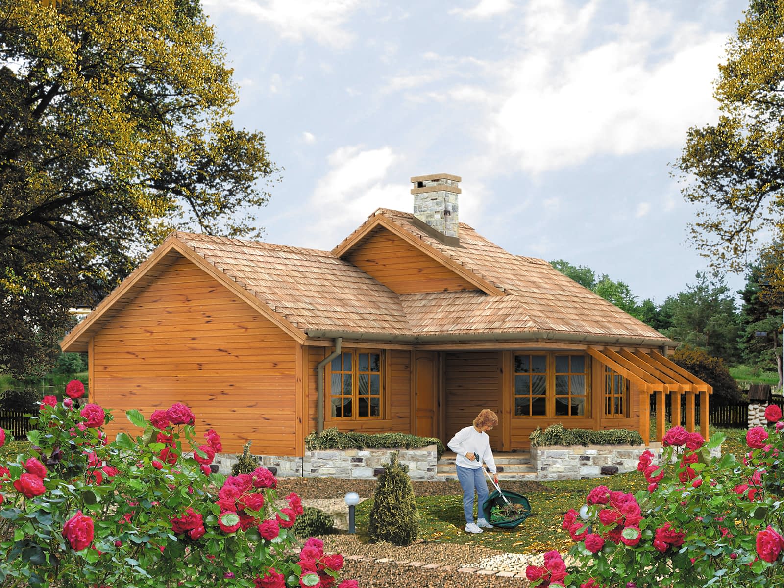 Ściany: szkielet drewniany, Stropy: na belkach drewnianych, Dach: dachówka bitumiczna,Rzuty