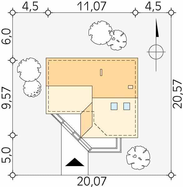 - Minimalne wymiary działki20.07 x 20.57m