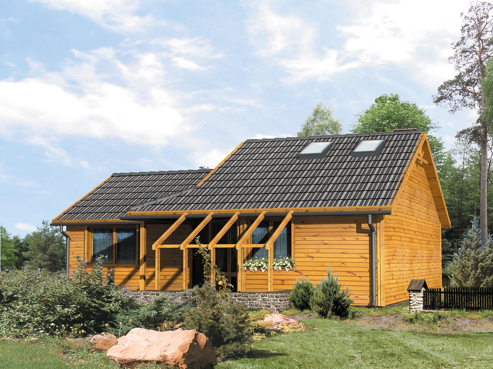 Dom letniskowy parterowy z częściowo zagospodarowanym poddaszem, niepodpiwniczony. Przeznaczony dla 3-osobowej rodzinyKonstrukcja