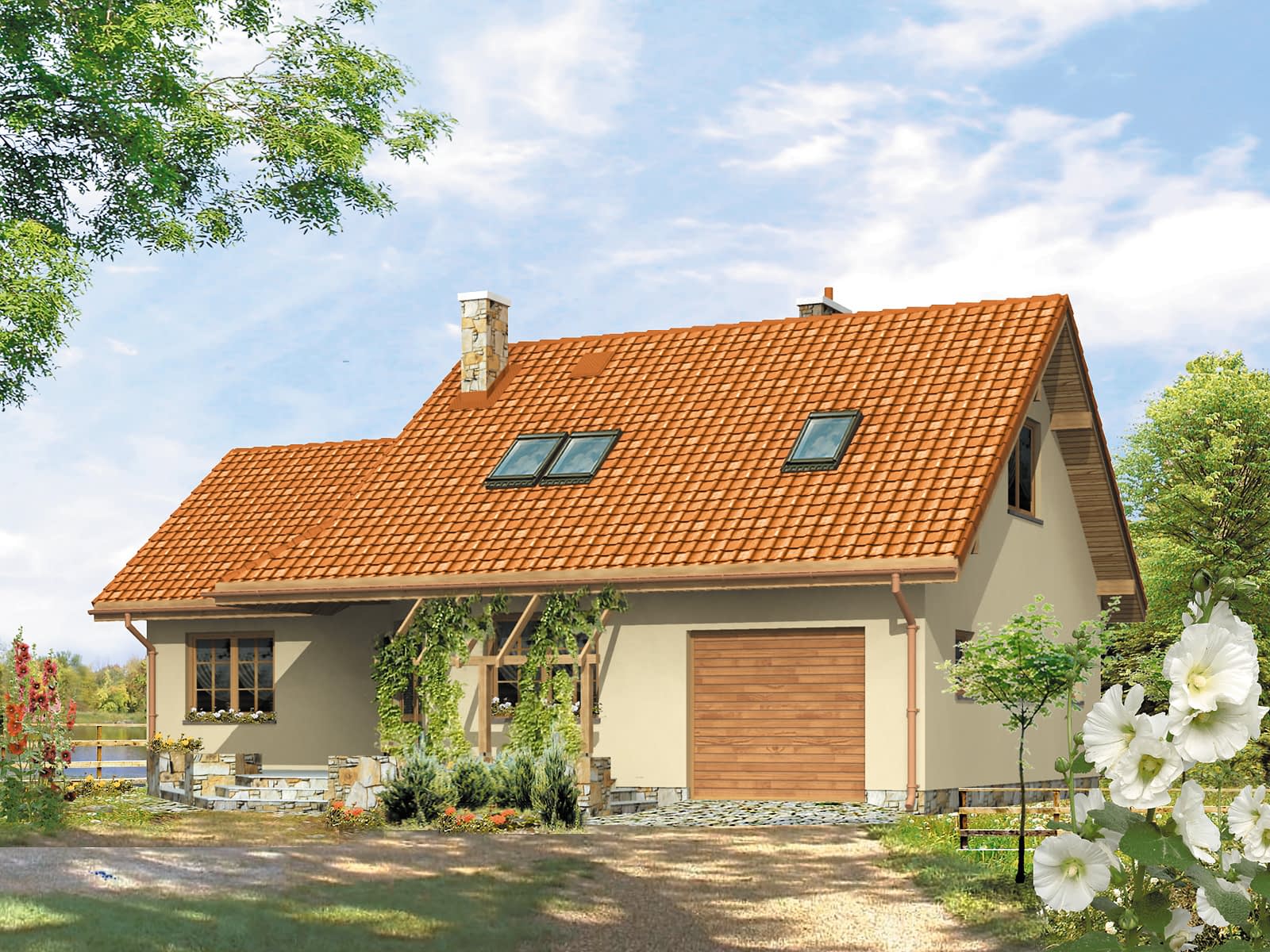 Mały dom jednorodzinny z niewielkim użytkowym poddaszem. Przeznaczony dla 3 – 4-osobowej rodziny.Konstrukcja