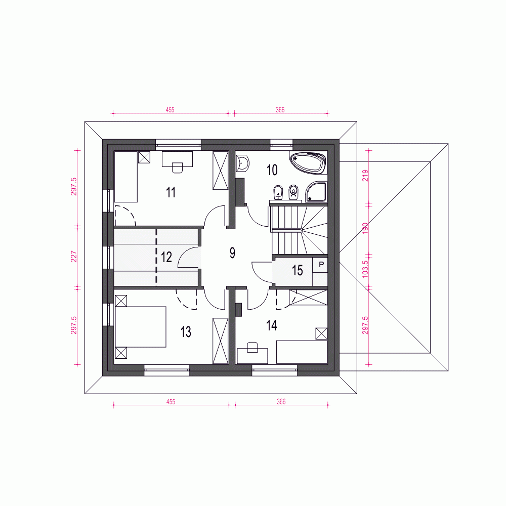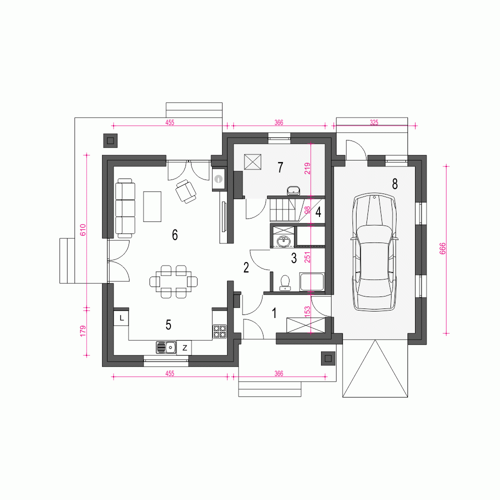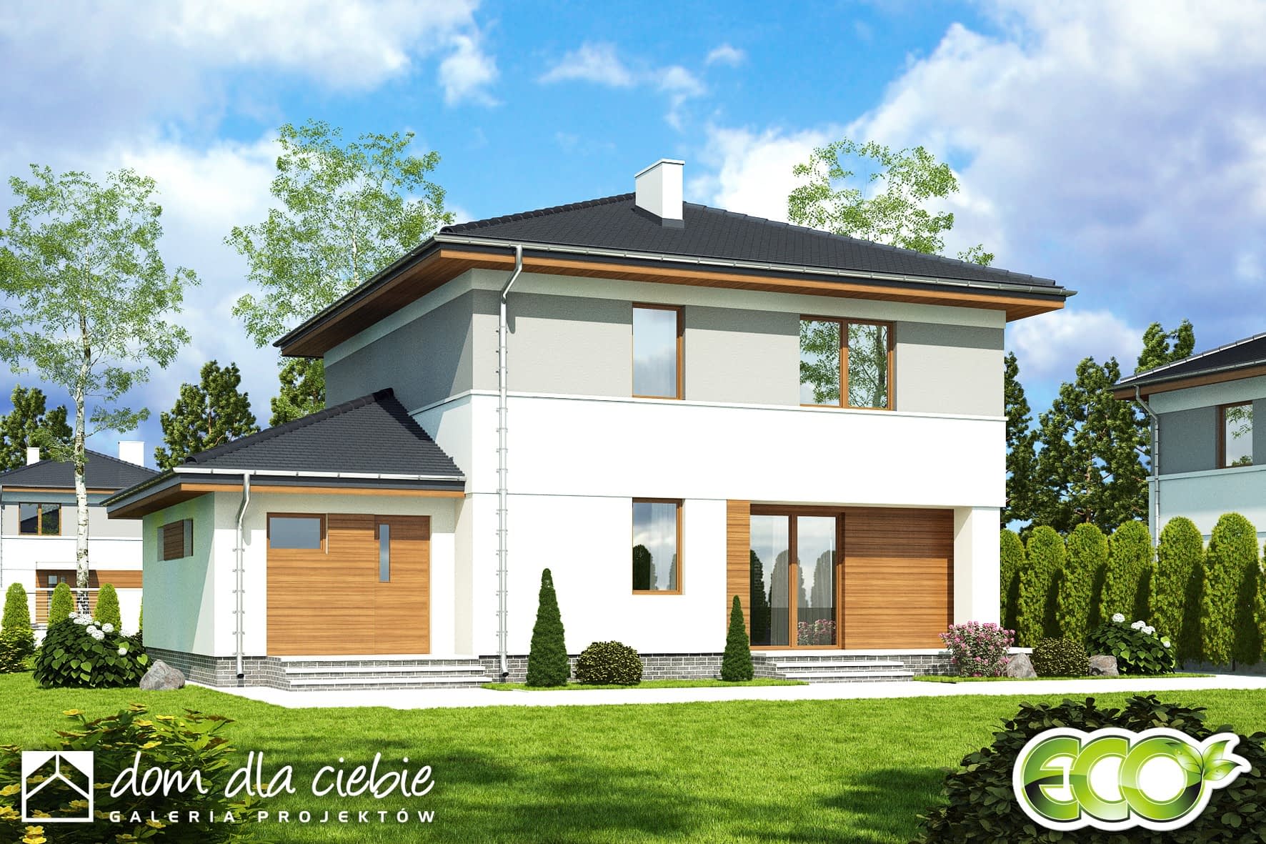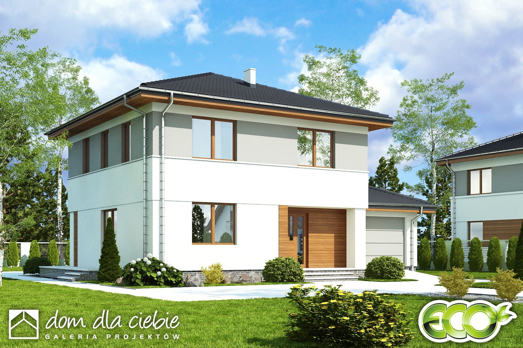 Projekt domu Tadeusz to klasyczny dom piętrowy o niewielkiej powierzchni z garażem 1st.