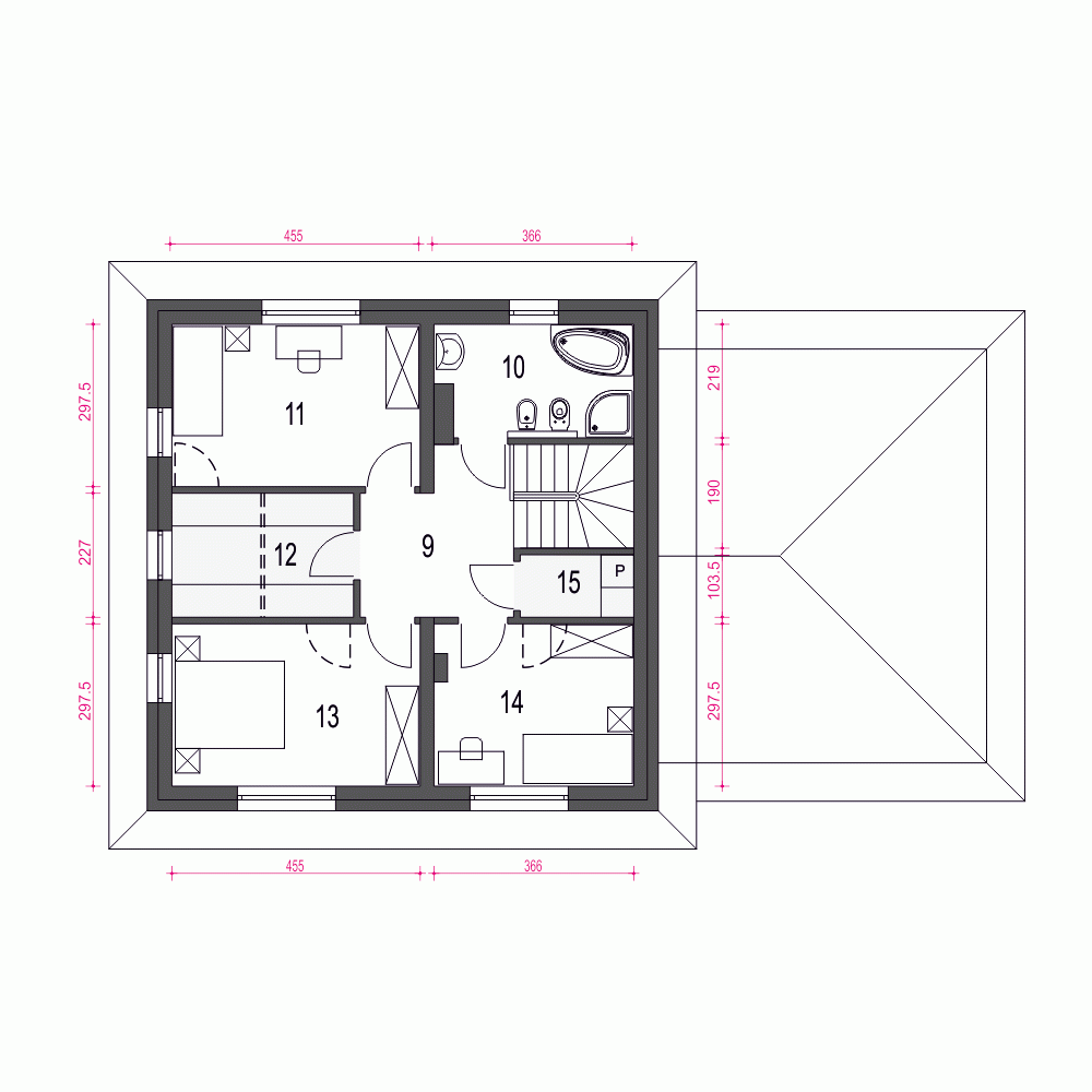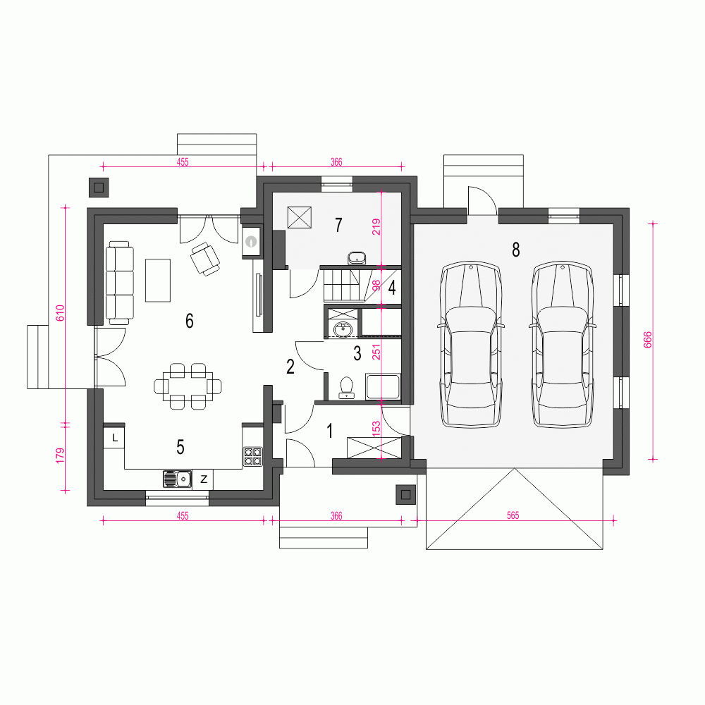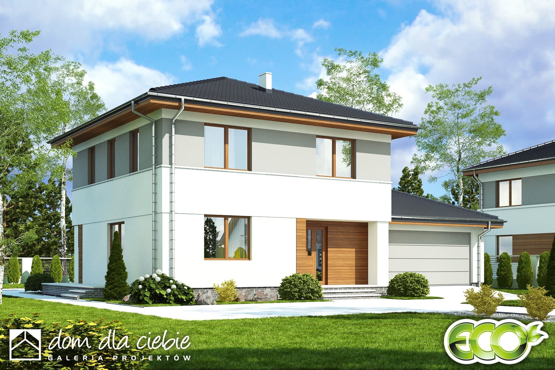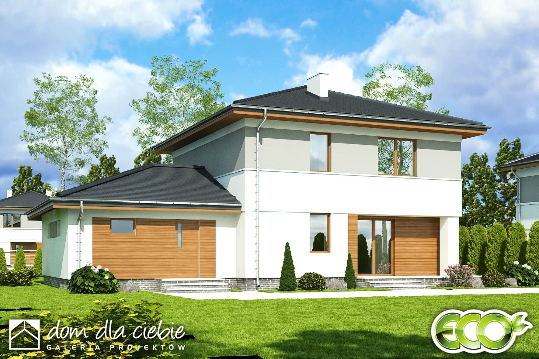 Projekt domu Tadeusz to klasyczny dom piętrowy o niewielkiej powierzchni z garażem dwustanowiskowym dedykowany 4 osobowej rodzinie. Parter zawiera salon z kominkiem oraz otwartą kuchnią. Na piętrze znajdziemy trzy sypialnie, garderobę, łazienkę oraz pralnię. Dom posiada kotłownię na paliwo stałe.To projekt idealny do miejskiej zwartej zabudowy.