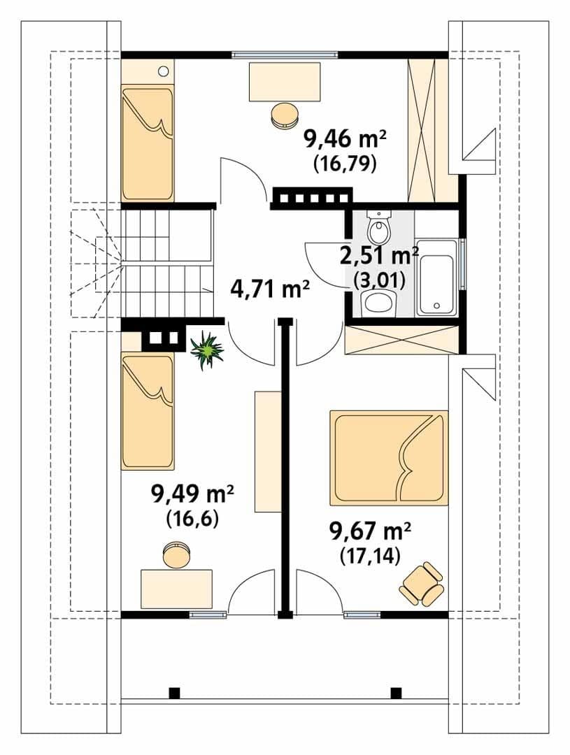 - rzuty poziome poszczególnych kondygnacji (parter, poddasze lub piętro),