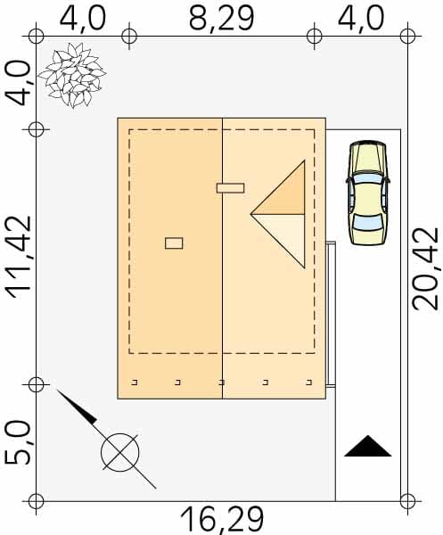 - Minimalne wymiary działki20.42 x 16.29m