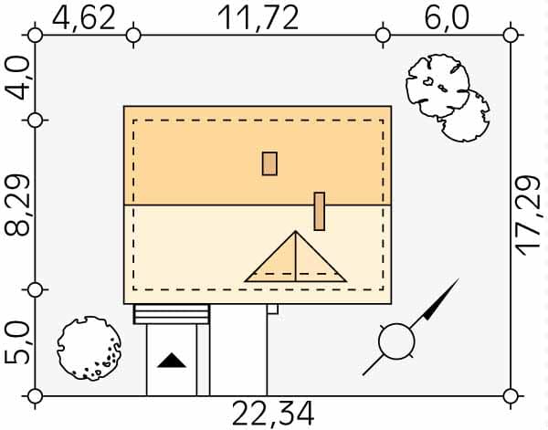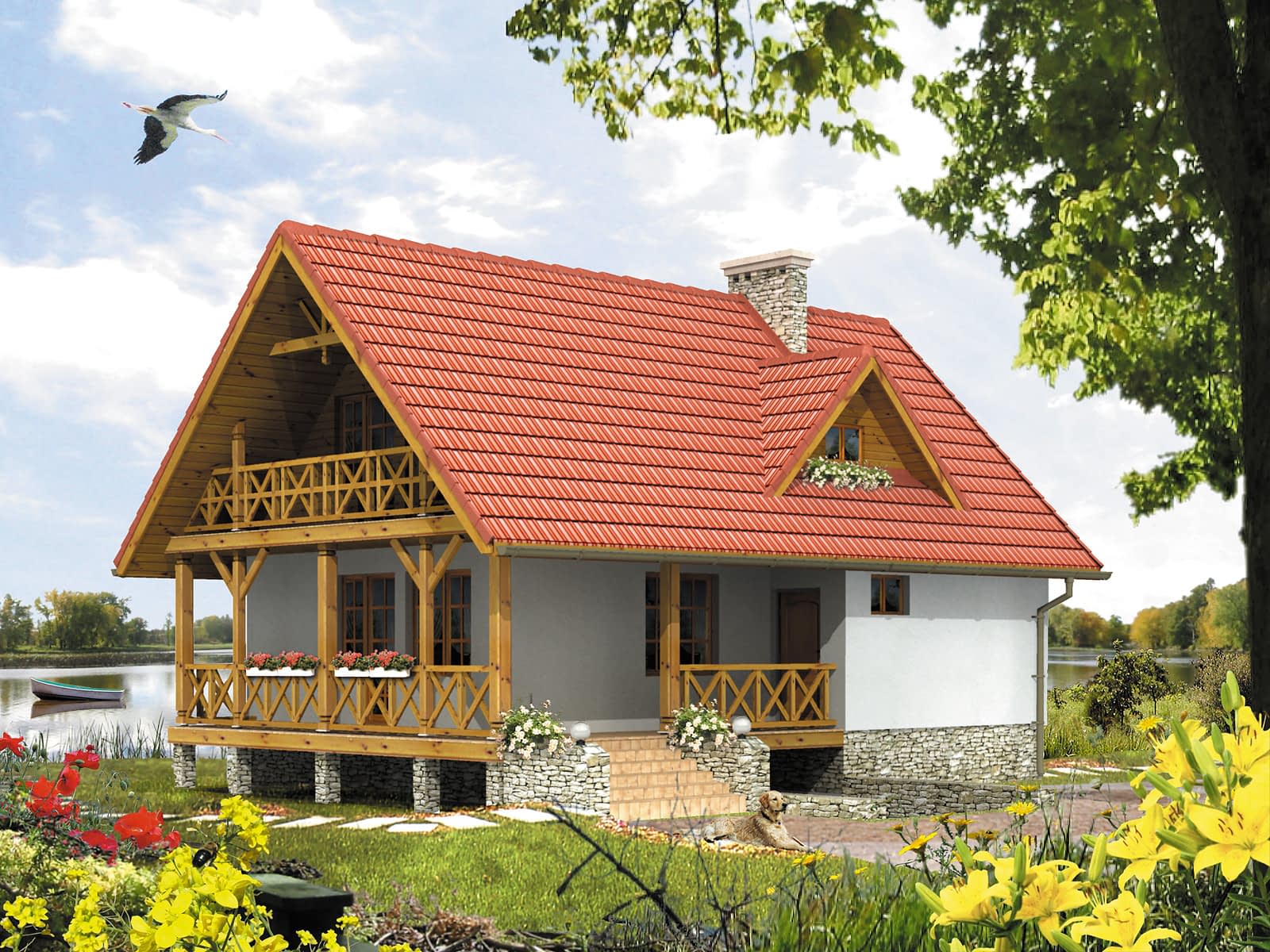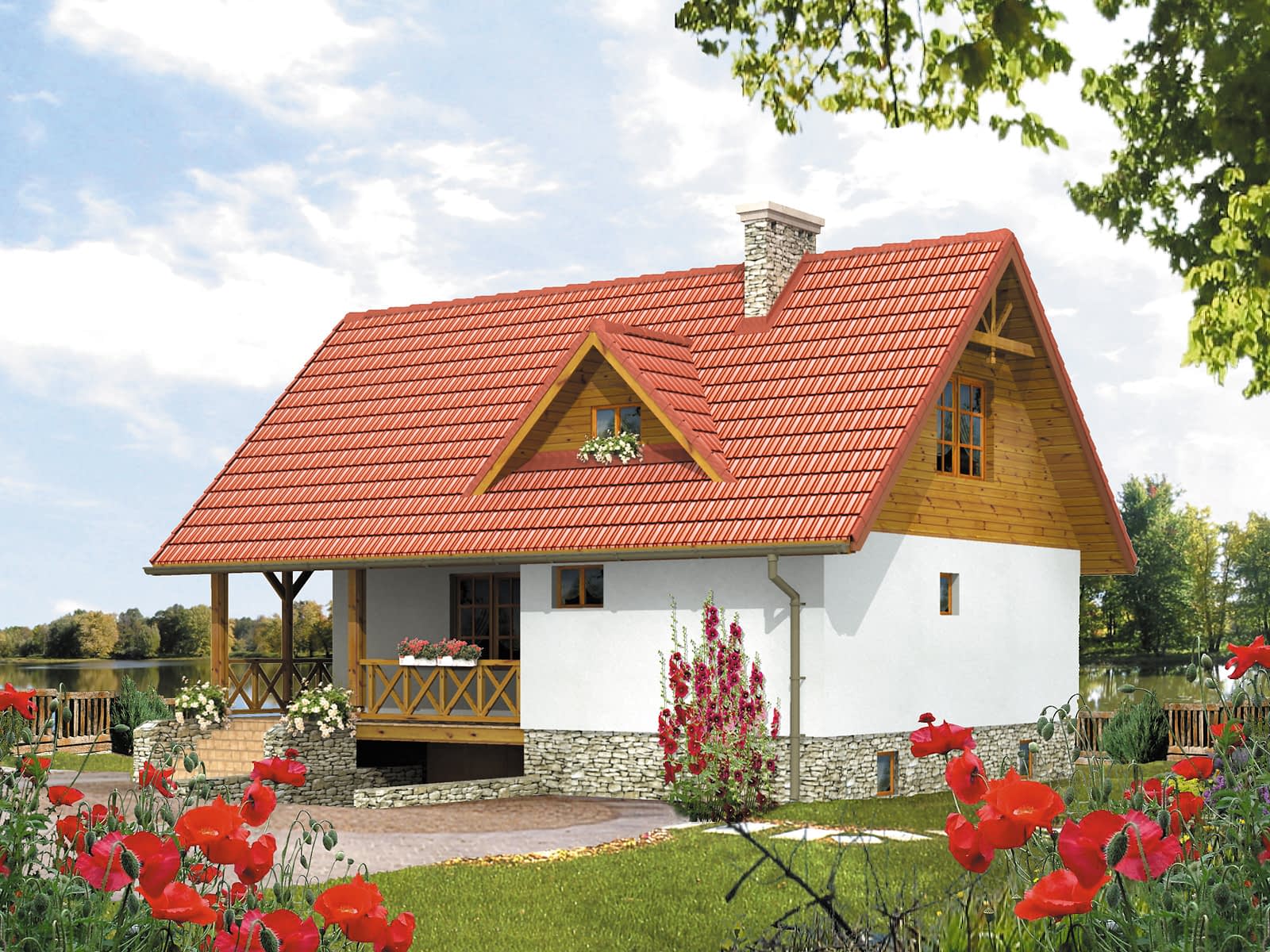 Wolno stojący domek z użytkowym poddaszem i całkowitym podpiwniczeniem. Niewielki, prosty w budowie dom dla 3 – 4 osób. Istnieje wersja domu letniskowego.Konstrukcja