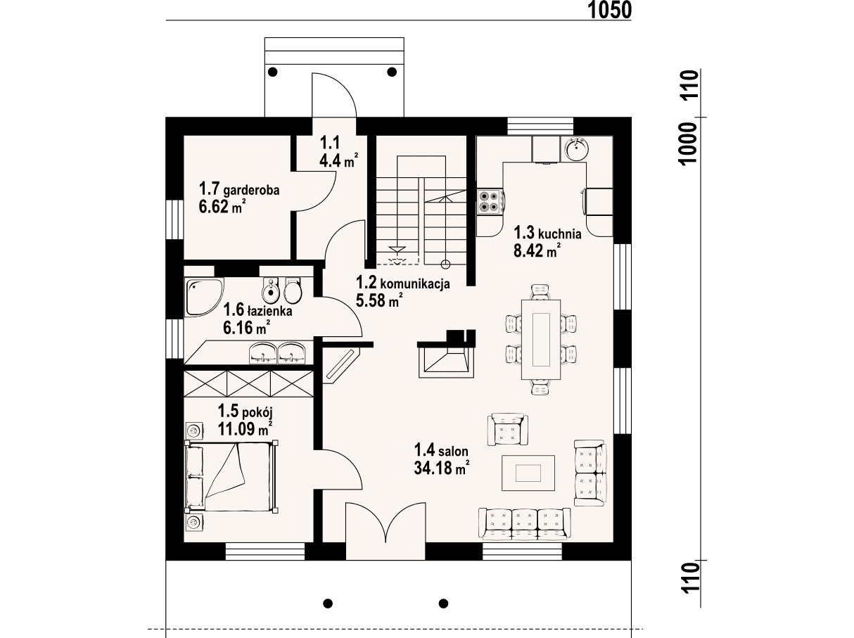 - Powierzchnia zabudowy105 m²