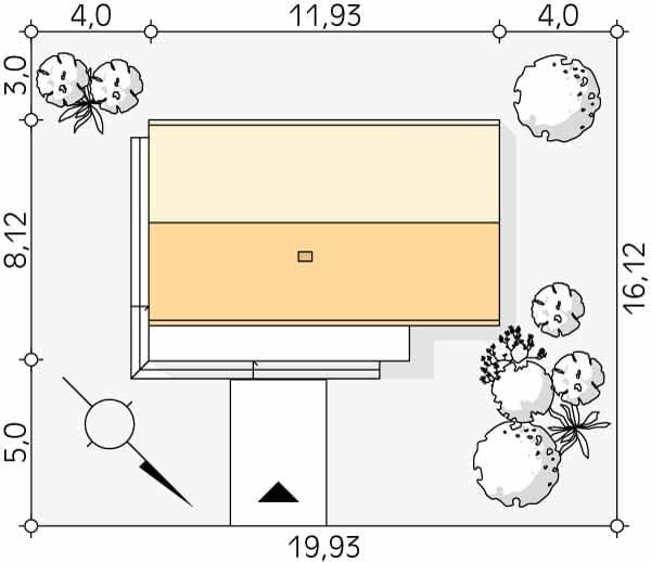 - Minimalne wymiary działki16.12 x 19.93m