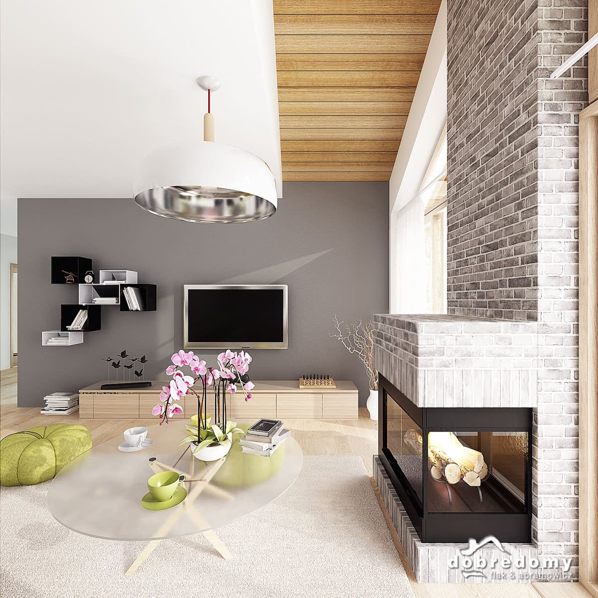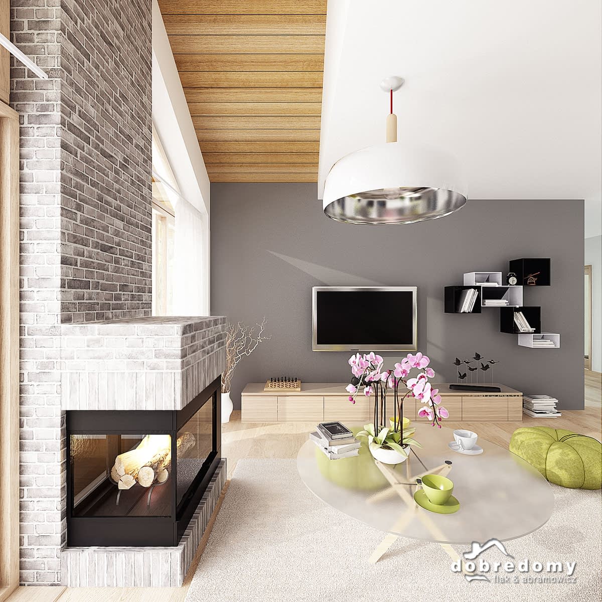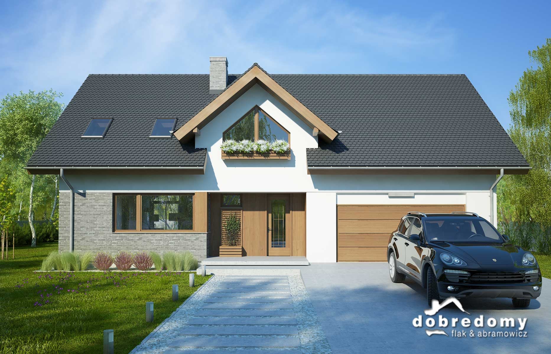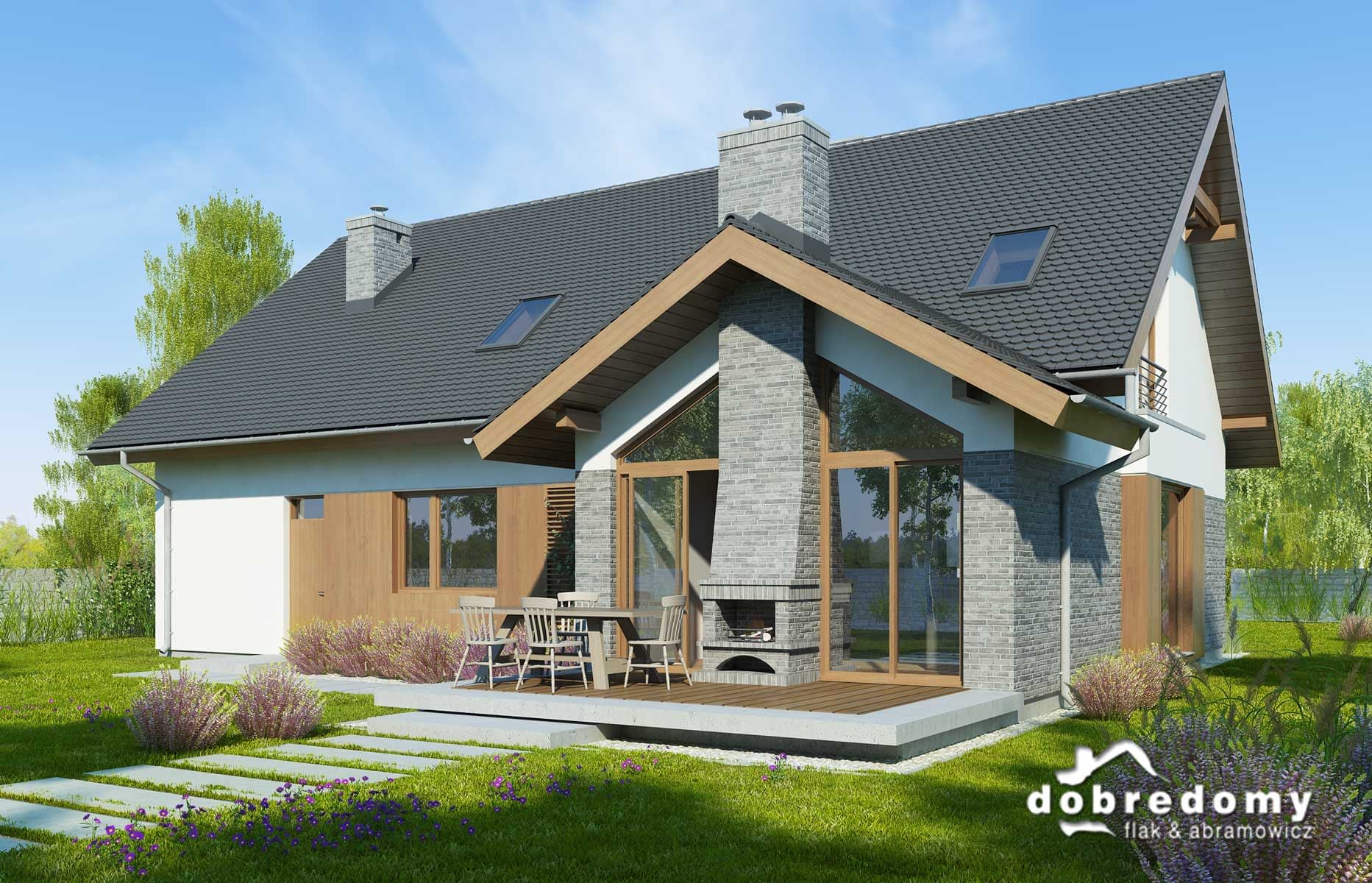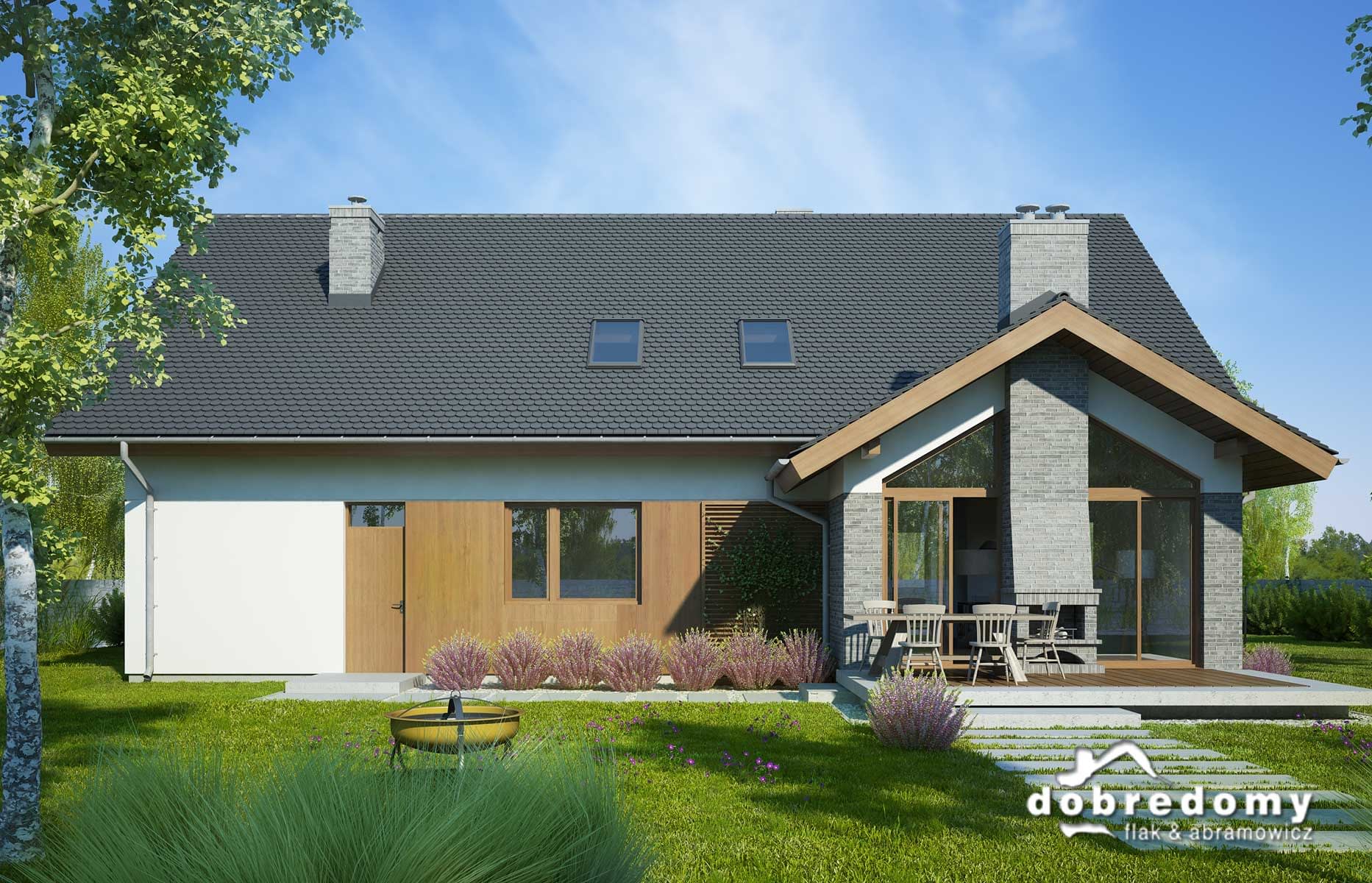 Elewacje pokryte tynkiem strukturalnym w systemie ociepleń Termo Organika, okładziną klinkierową oraz drewnianą. W projekcie zastosowano okna dachowe marki FAKRO. Pokrycie dachu - dachówka ceramiczna lub cementowa CREATON.