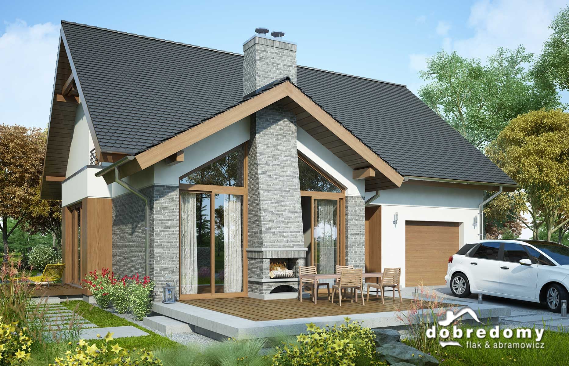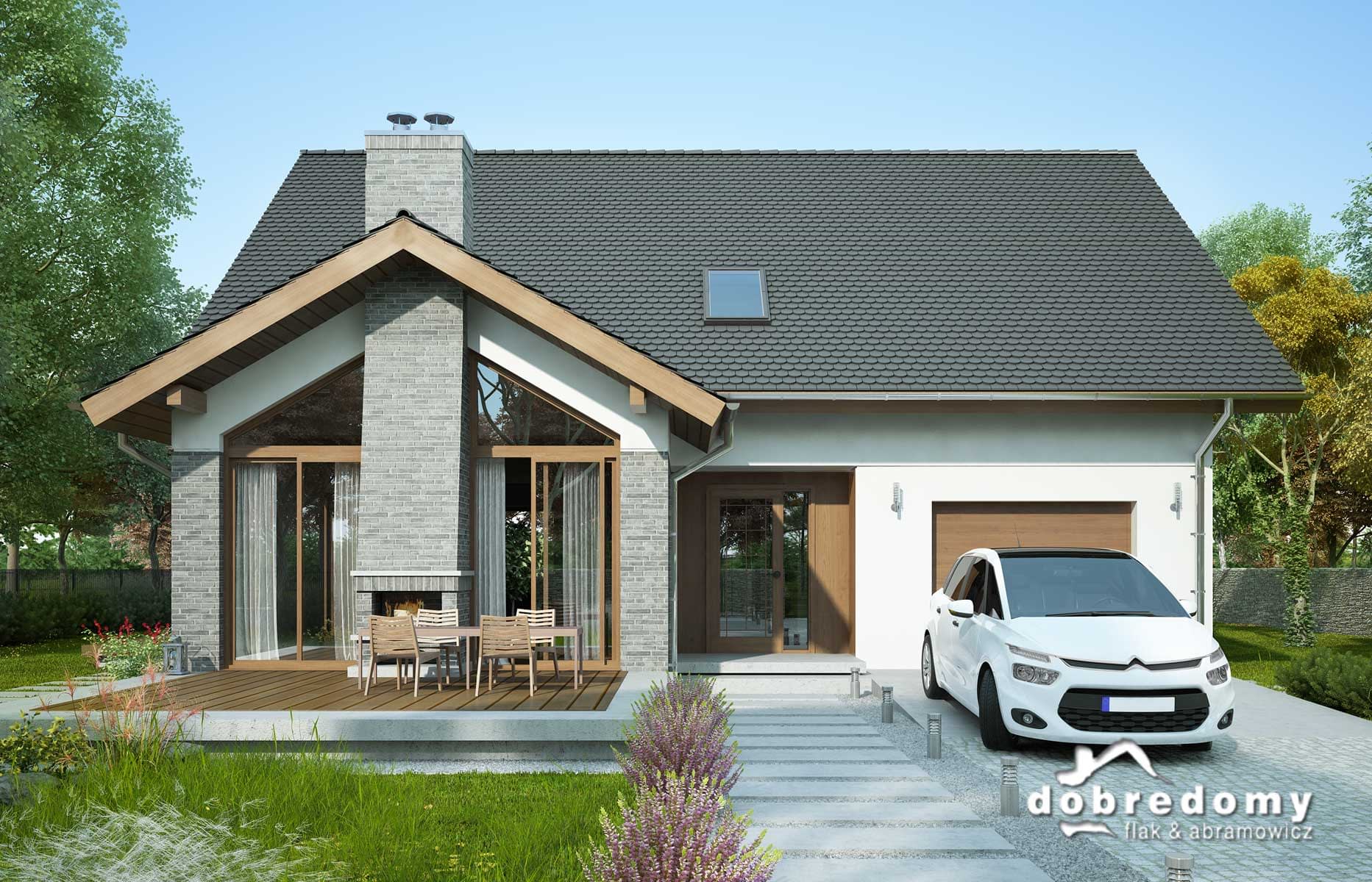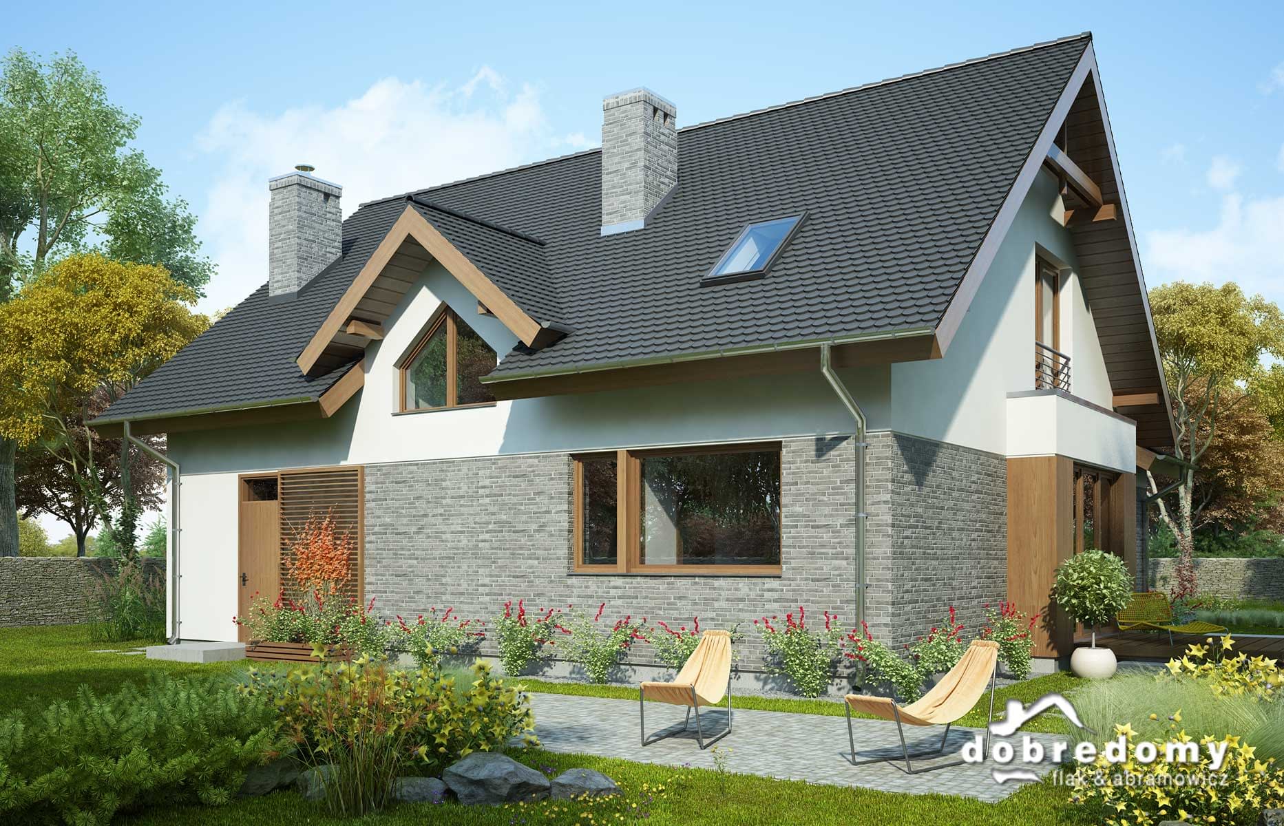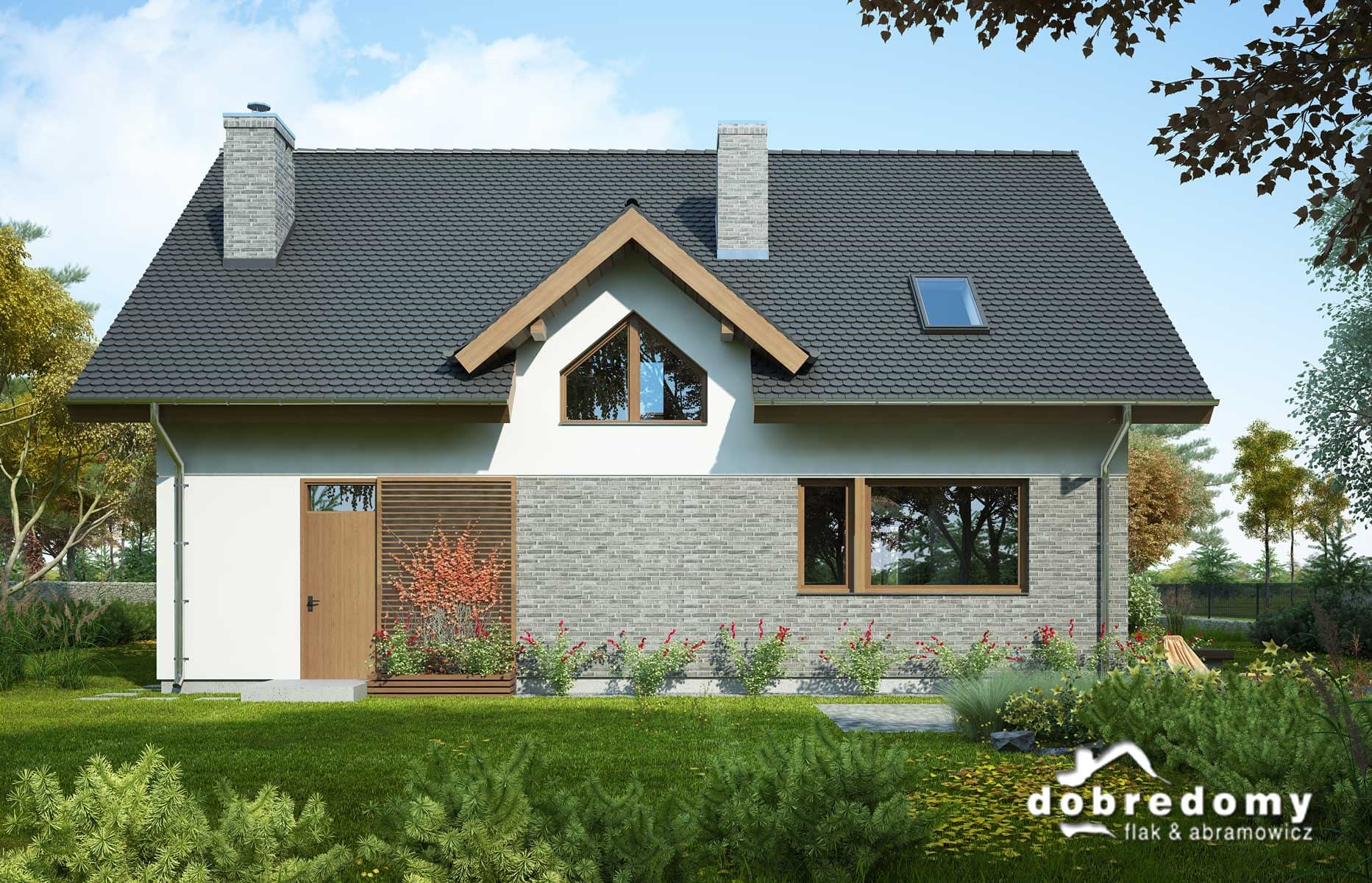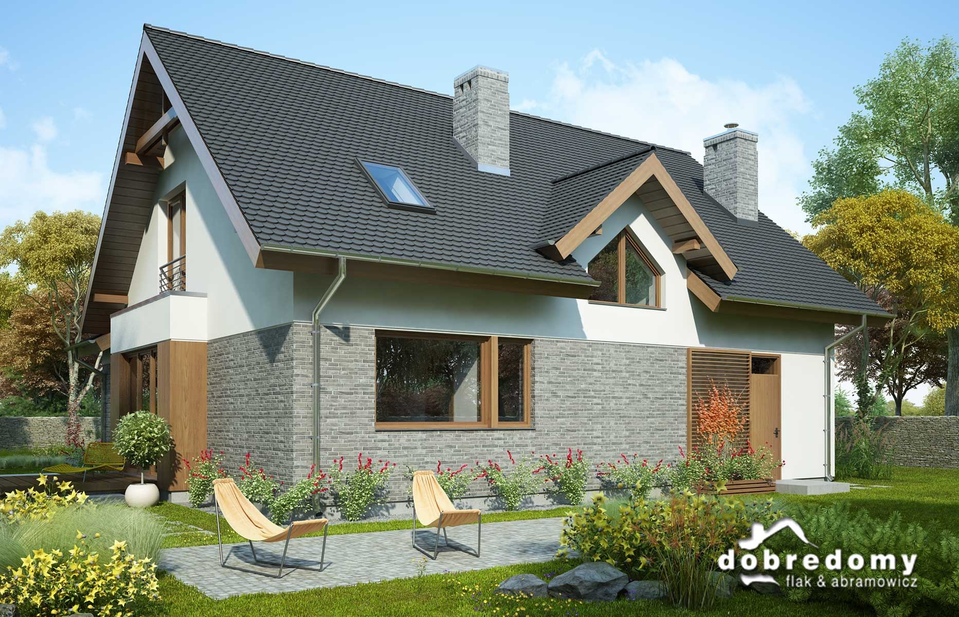 Elewacje pokryte tynkiem strukturalnym w systemie ociepleń Termo Organika, okładziną klinkierową oraz drewnianą. W projekcie zastosowano okna dachowe marki FAKRO. Pokrycie dachu - dachówka ceramiczna lub cementowa CREATON.