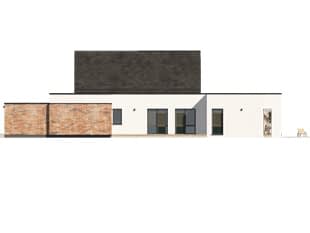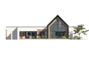 Projekt Temida to nowoczesny projekt domu parterowego, który wyróżnia się nowoczesną stylistyką wykończenia oraz praktycznym układem funkcjonalnym. Rozłożysta bryła budynku wyróżnia się geometrycznymi kształtami, które podkreślają nowoczesny charakter domu. W większości dom został przykryty płaskim dachem, na tle którego wybija się salon przykryty dwuspadowym, bezokapowym dachem. Centralne miejsce w domu zajmuje część dzienna, na którą składa się reprezentacyjny salon, jadalnia oraz otwarta kuchnia. Elementem charakterystycznym są liczne, wysokie przeszklenia oraz wysoki sufit w części dziennej. W dużej kuchni znajduje się centralnie położona wyspa, barek śniadaniowy oraz długi blat roboczy. Zarówno z kuchni jak i z jadalni można wyjść na zadaszony taras. Przy kuchni znajduje się również sporej wielkości spiżarnia. W części nocnej domu zaprojektowano trzy sypialnie oraz ogólnodostępną łazienkę. Główna sypialnia tworzy apartament gospodarzy z własną łazienką, garderobą oraz wyjściem na prywatny, zadaszony taras. Uzupełnieniem układu funkcjonalnego jest szatnia przy wejściu głównym, prowadząca do kotłowni, dwustanowiskowego garażu oraz pomieszczenia technicznego z dodatkowym wyjściem zewnętrznym.Konstrukcja