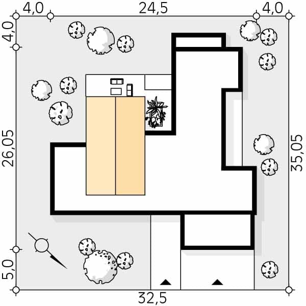 - Minimalne wymiary działki35.05 x 32.5m