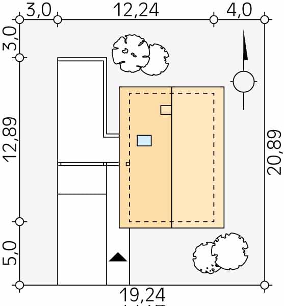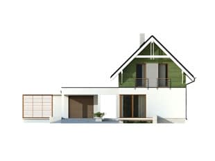 Niewielki dom mieszkalny przeznaczony dla 4-osobowej rodziny. Na stosunkowo niewielkiej powierzchni zaprojektowano bogaty program funkcjonalny. Na parterze znajduje się przestronny salon z aneksem kuchennym oraz duże wielofunkcyjne pomieszczenie gospodarcze, które z powodzeniem może zostać zaadaptowane na kotłownię na paliwo stałe. Na poddaszu znajduje się funkcjonalna łazienka oraz trzy sypialnie. Sypialnia rodziców dodatkowo posiada oddzielną garderobę.Konstrukcja