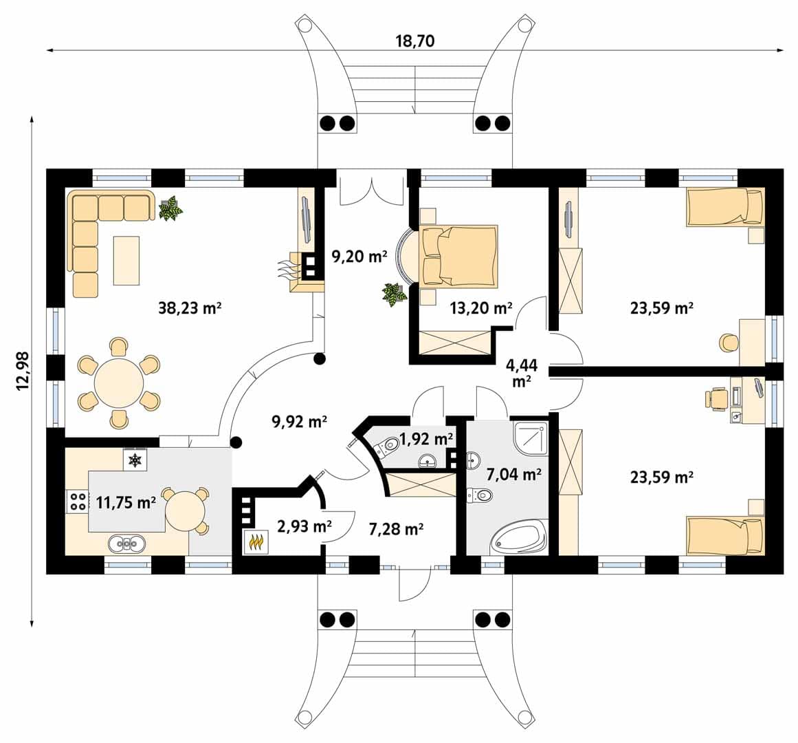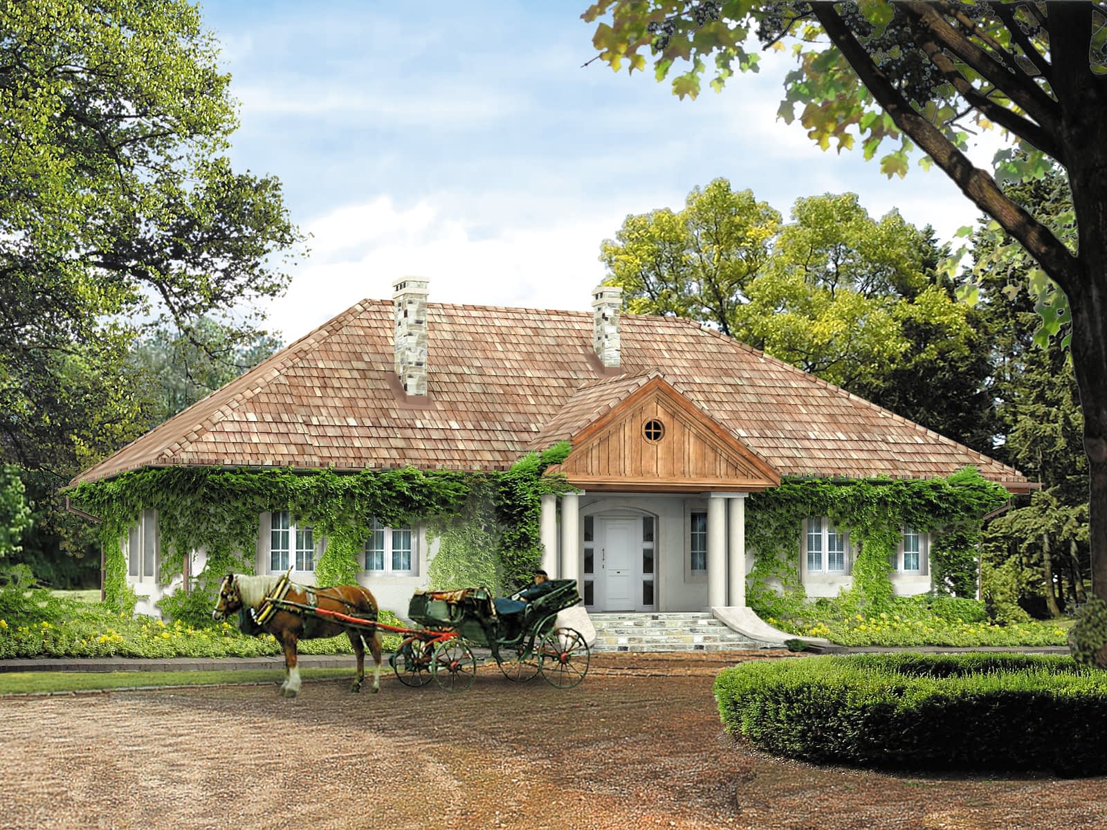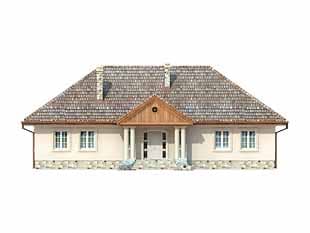 Dom jednorodzinny, wolno stojący, parterowy, niepodpiwniczony, zaprojektowany w stylu reprezentacyjnego dworku. Przeznaczony dla 4-osobowej rodziny. Prosty w budowie i ekonomiczny w utrzymaniu. Wyraźny podział na strefę dzienną i nocną. Strefa robocza kuchni pozostaje niewidoczna z salonu. Przestronne sypialnie pozwalają na ich ciekawą aranżację.Konstrukcja