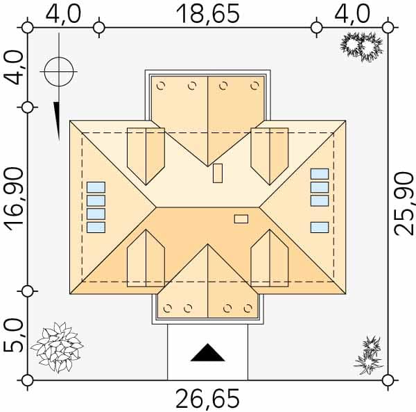 Ściany: 2-warstwowe - pustak ceramiczny Porotherm 25 Profi + styropian Termo Organika, Stropy: żelbetowe, wylewane, Dach: dachówka ceramiczna,Rzuty