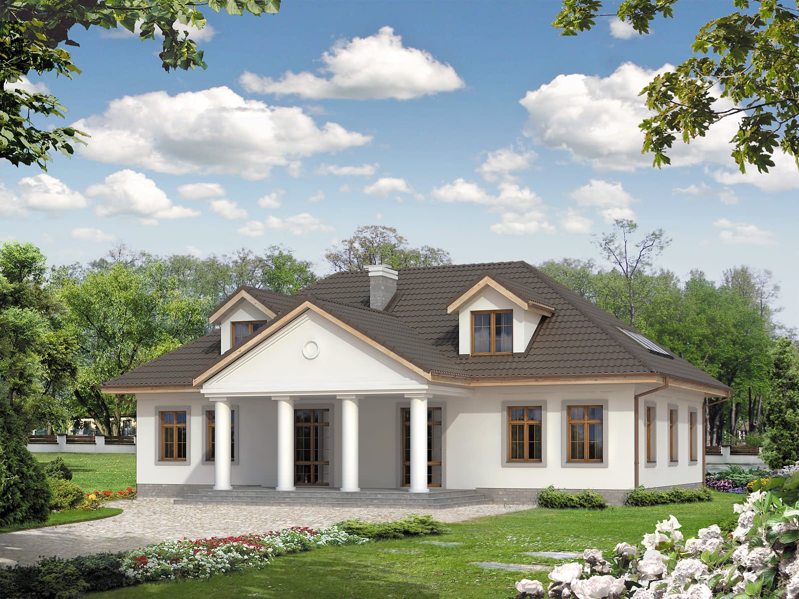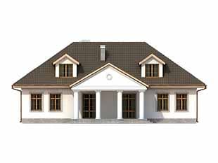 Dom jednorodzinny, wolno stojący, podpiwniczony z poddaszem użytkowym. Wygodny, przestronny dom przeznaczony dla licznej rodziny. Tradycyjna bryła o dworkowym charakterze. Posiada duży zadaszony taras.Konstrukcja